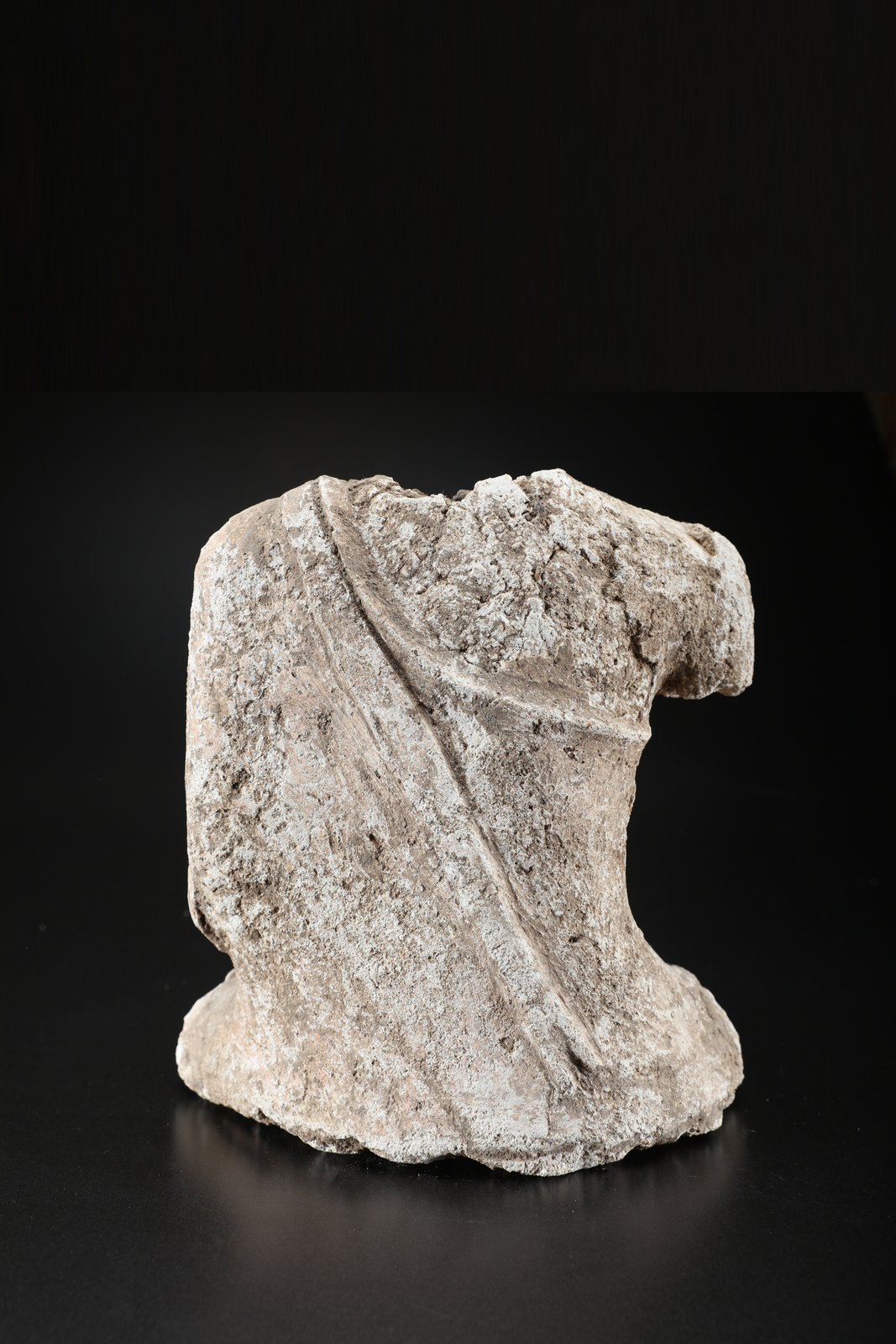Thailandia, regno Lan-na, XVI secolo . -. Cm 23,00 x 25,50. Torso raffigurante il Buddha storico Sakyamuni abbellito da un morbido dothi che avvolge la spalla sinistra. L'oggetto mostra cospicue tracce policrome.