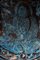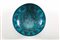 Fritta dipinta in nero sotto invetriatura turchese. -. Cm 26,00 x 10,50. Poggiante su disco, mostra decorazione istoriata comprendente cartucce ovali raffiguranti musicisti che circondano un giovane che suona l'arpa su sfondo di arabeschi in riserva su nero nel tondo centrale. Il bordo superiore mostra una fascia di calligrafia in corsivo graffiata su fondo nero, mentre l'esterno è caratterizzato da decori a motivo vegetale astratto. Lo stile decorativo e la fisionomia dei volti hanno forti affinità con con i lustri di Kashan e con le ceramiche della tipologia Minai.