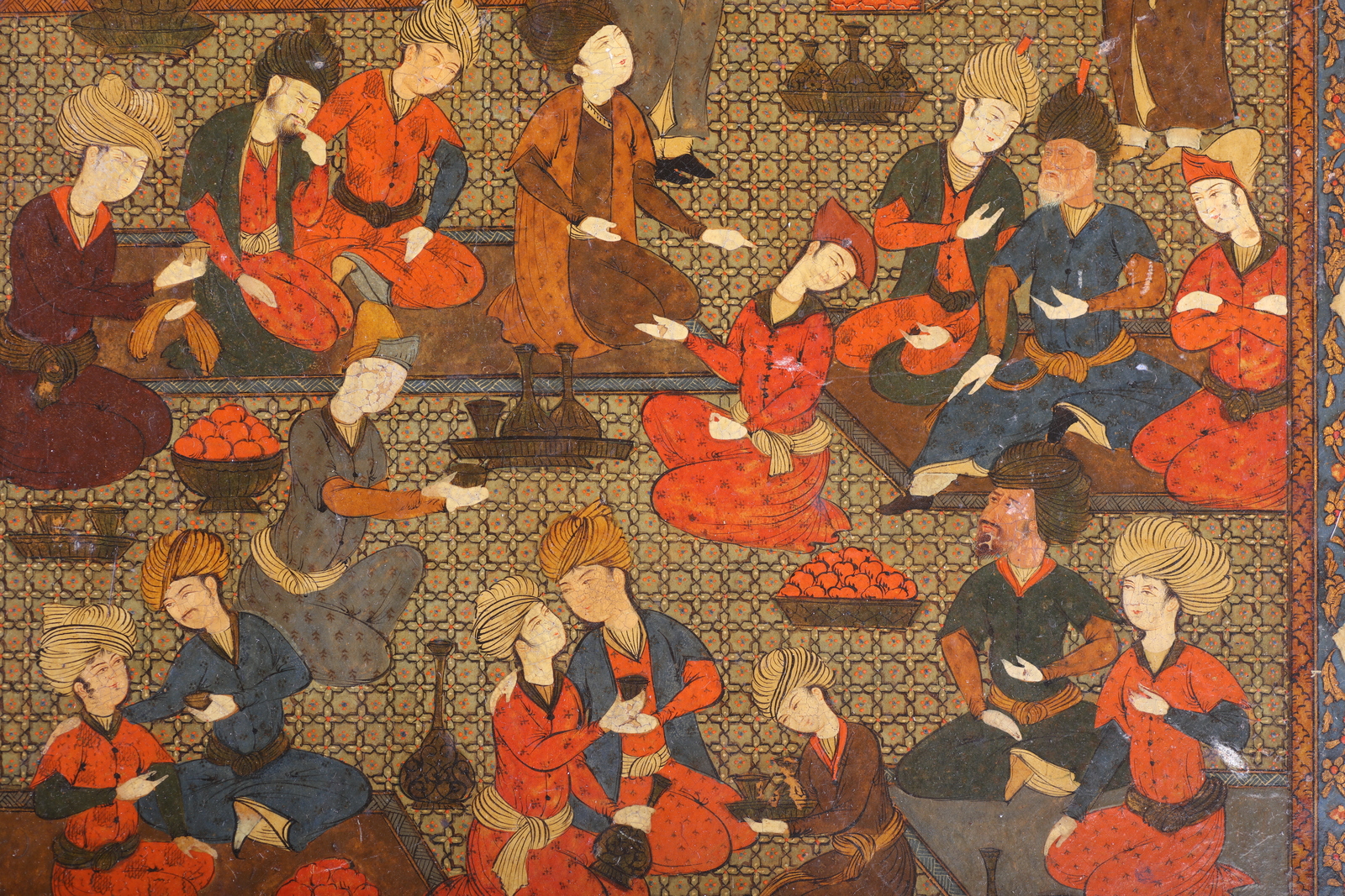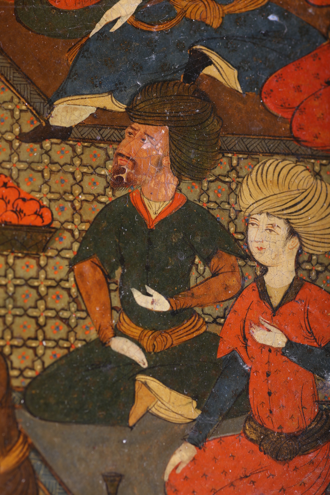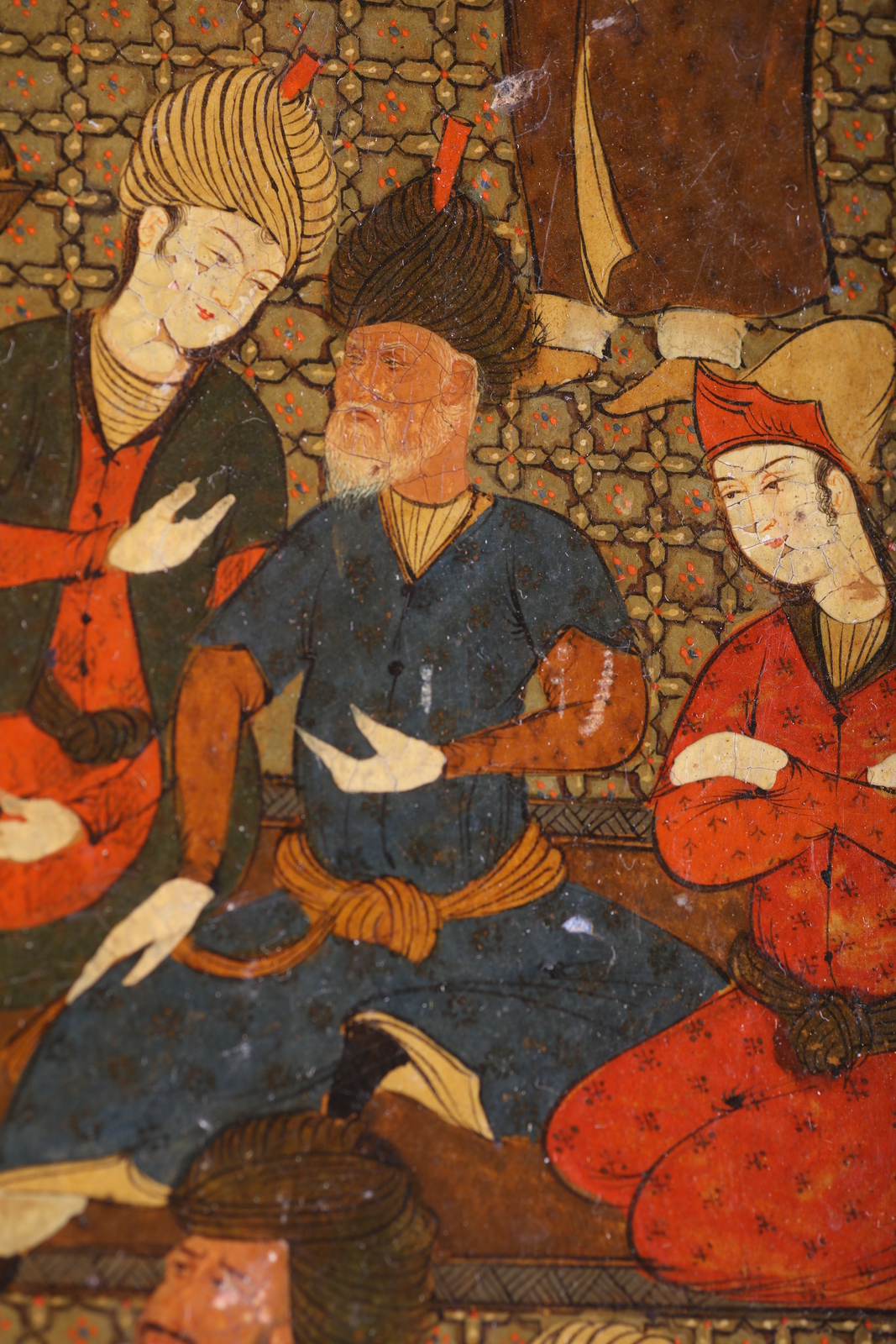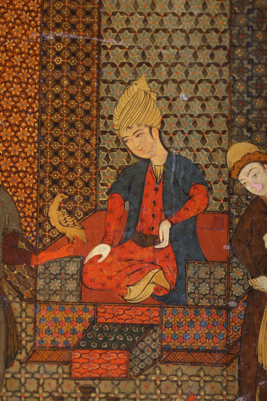 Arte Islamica A large papier mache lacquer board depicting a royal gathering in the Safavid style
