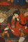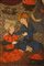 Iran, XIX secolo. -. Cm 48,80 x 72,00 x 0,90. Grande dipinto raffigurante una festa di corte caratterizzata dallo Shah in alto a destra inquadrato in un edificio a prospettiva multipla e circondato da attendenti che recano cibo e personaggi che banchettano nel registro inferiore. Sullo sfondo un paesaggio bucolico separato dal contesto animato dalla cancellata rossa che, insieme alla resa delle figure e al taj (copricapo con bacchetta centrale), situano il dipinto nella scia del repertorio Safavide. Alcune facce sono state cancellate, molte sono stereotipate, alcune sembrano essere effettivi ritratti. Illuminazione di palmette e mezze palmette intrecciate sui margini.