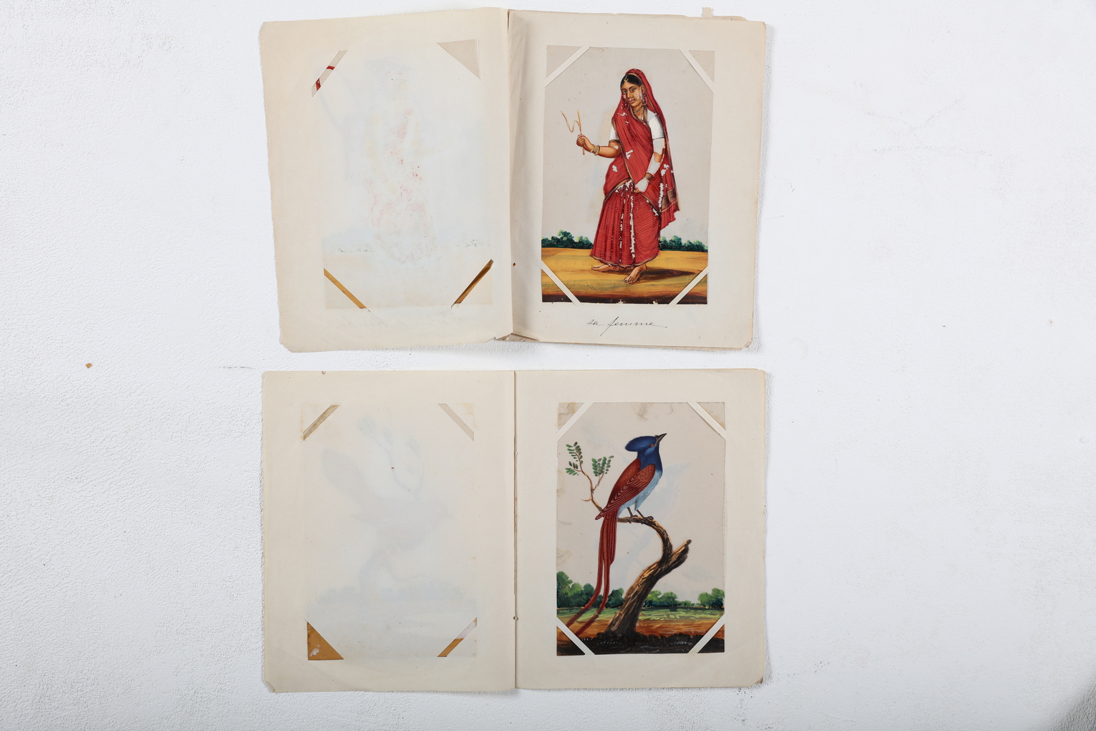 India meridionale, Thanjavur, fine XIX secolo . -. Cm 10,00 x 15,00. Due album rappresentano uccelli in contesti naturali, il terzo elenca diversi mestieri locali. Una dedica in francese data i dipinti 1893-95.