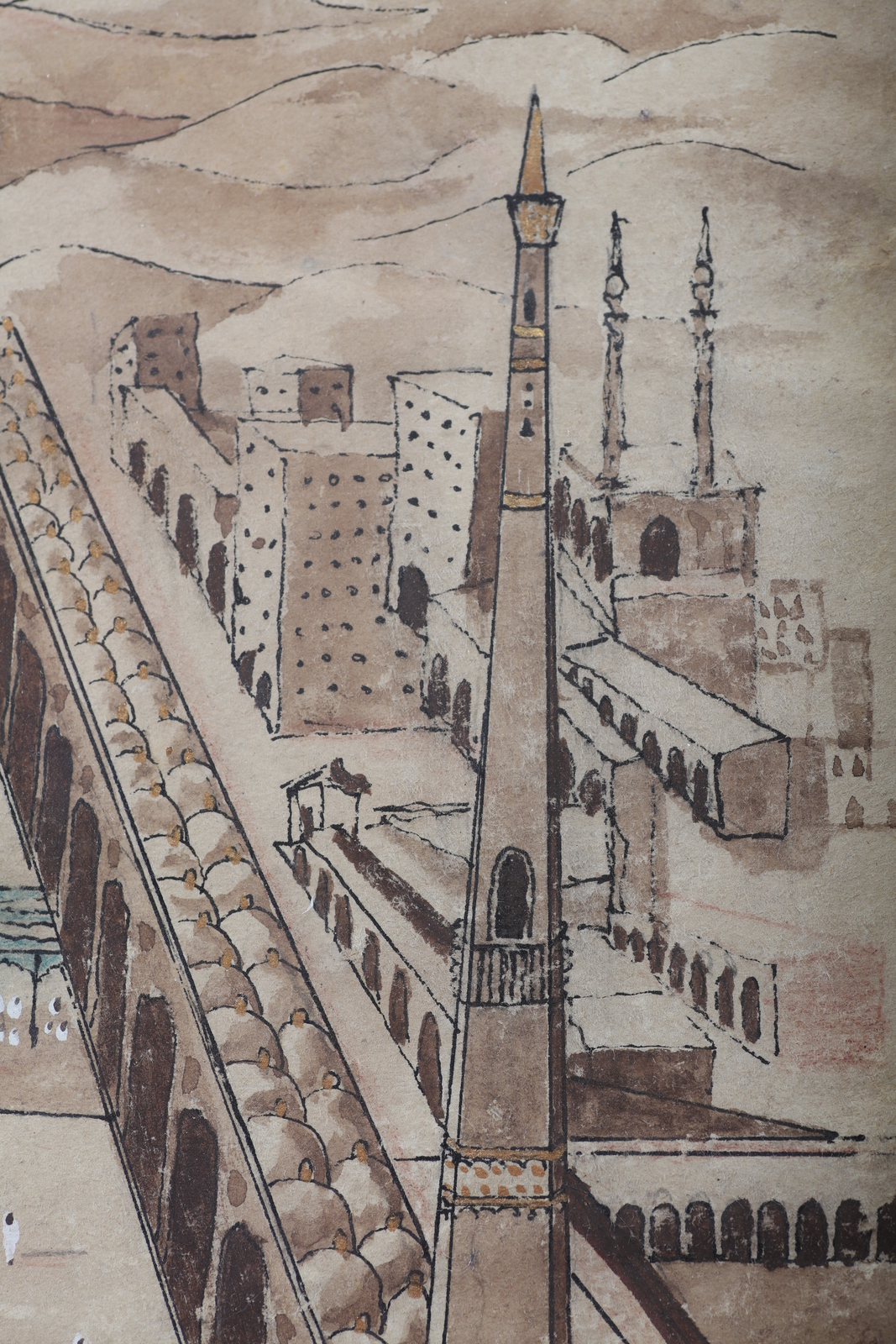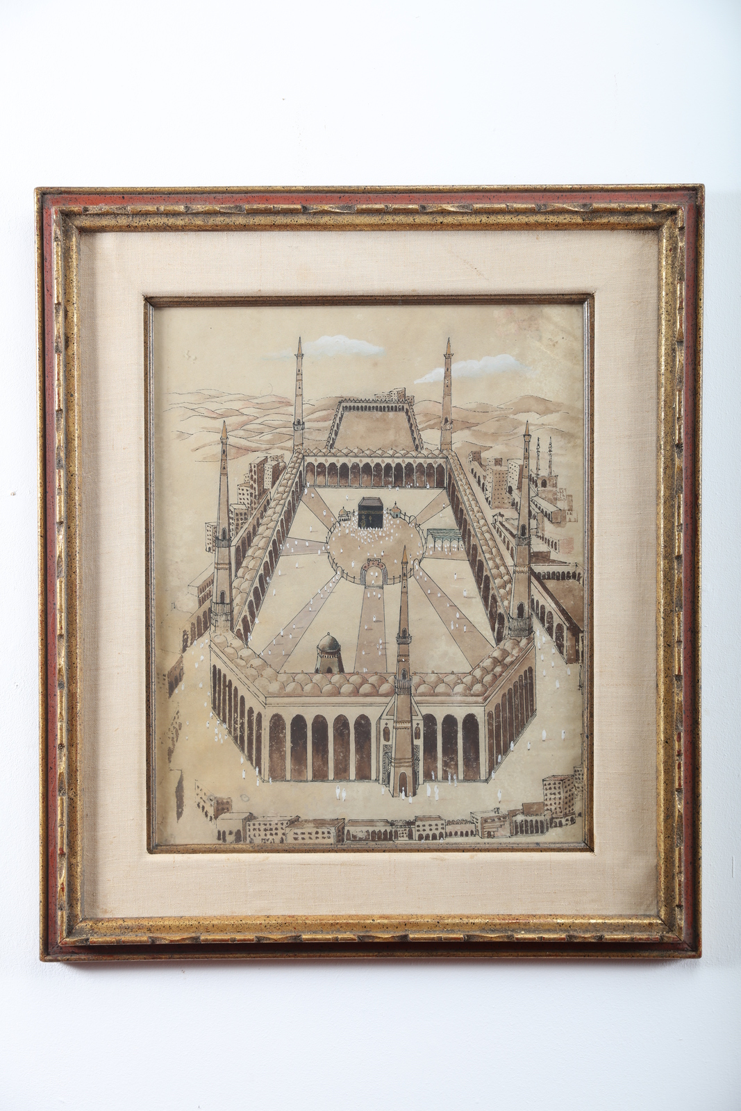 ARTE ISLAMICA Painting of Mecca Ottoman Turkey, 19th century Ink, colors and gold on paper. . Cm 43,00 x 52,00. Cornice presente