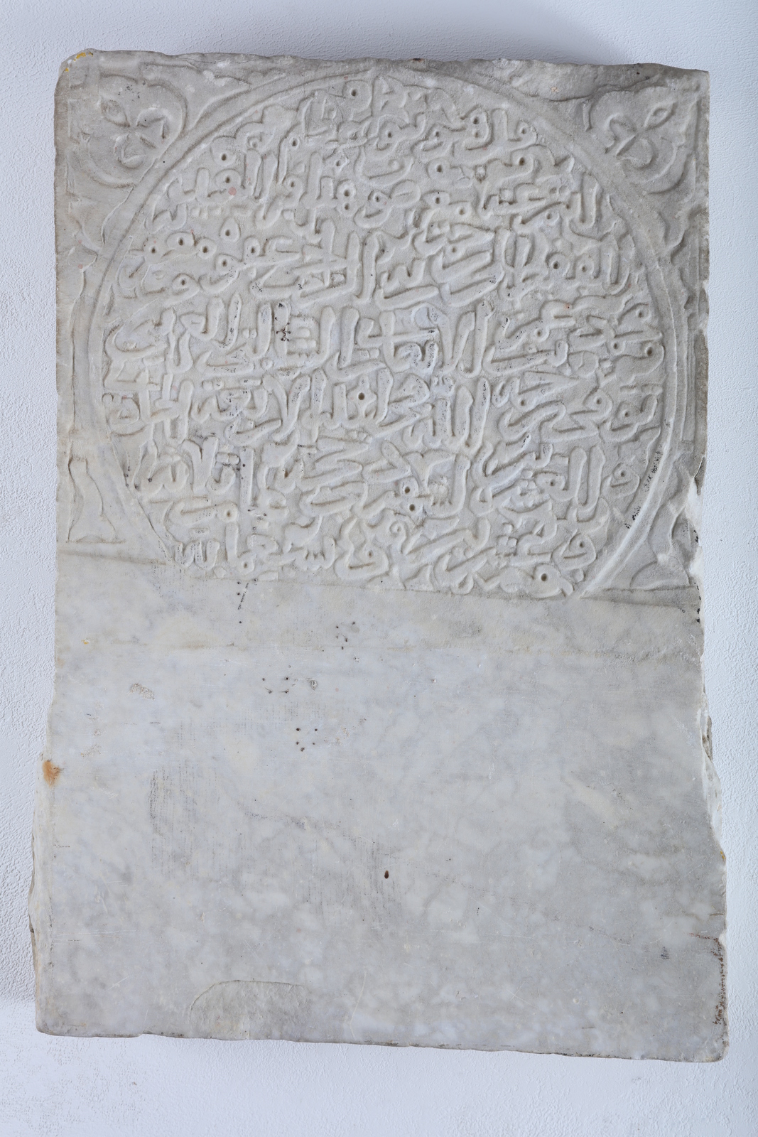 ARTE ISLAMICA A white marble commemorative stele with epigraphy Near East or Sicily, 16th century . . Cm 35,00 x 51,00 x 7,00. Exhibits two arabesques in the upper corners and a circle framing an epitaph identifying it as the funerary stele of Muhammad b. Omar al Ansari (?)al- Shalati al-arabi (the Arab), died on 21 dhu'l -Higga 923 (January 4, Tuesday, 1518 AD). The nickname “the Arab” could mean that this person lived in a foreign land, from whence the hypothesis of its Sicilian origin, and the referral to a similar object hosted in the Galleria Regionale della Sicilia, Palermo, and published in Giovanni Curatola (edited by) Eredità dell’Islam, 1993 pp. 202-203.