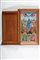 ARTE ISLAMICA A mirror within a wooden frame with multiple carved layers and a miniature depicting the Prophet, Ali, Husayn and Hasan