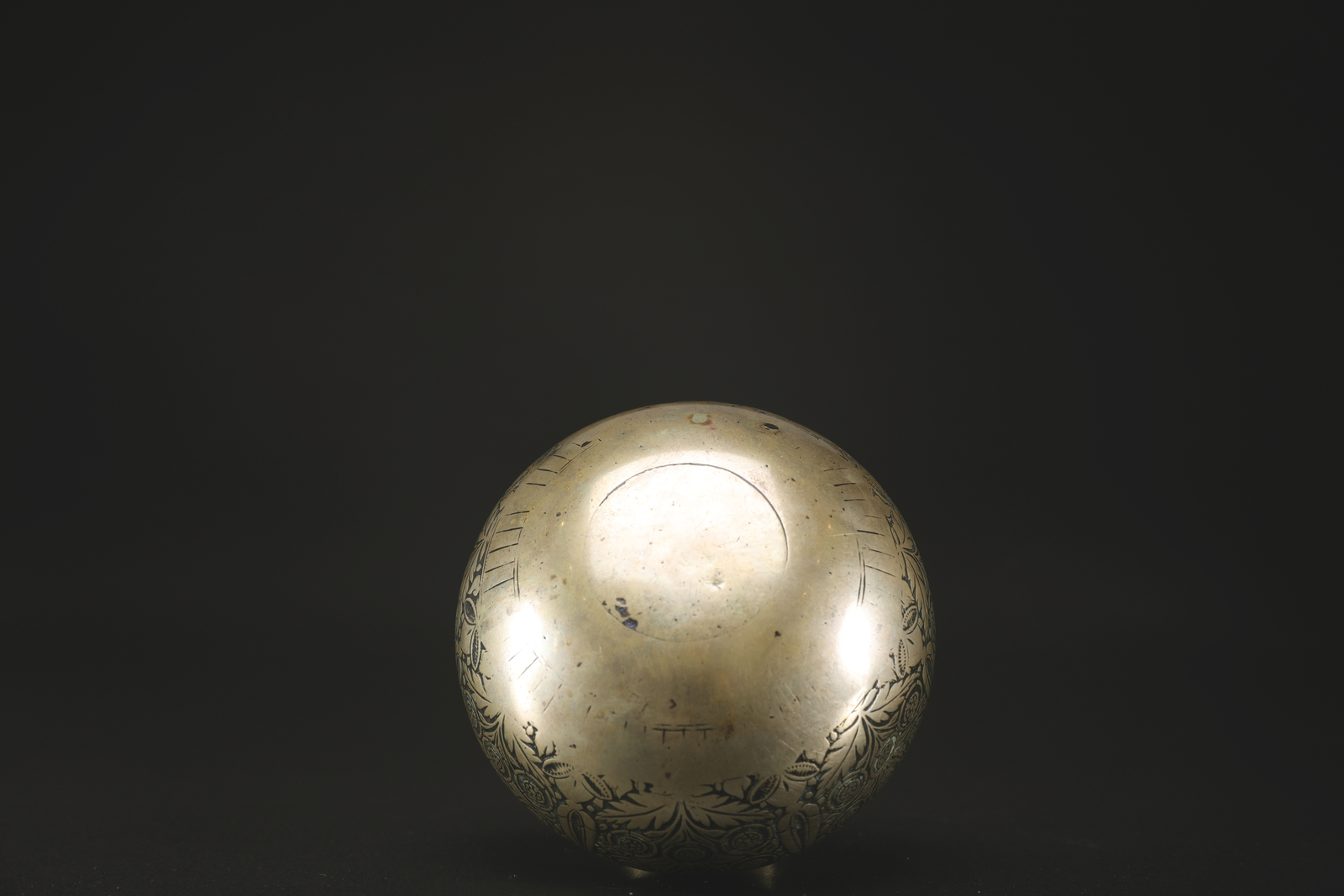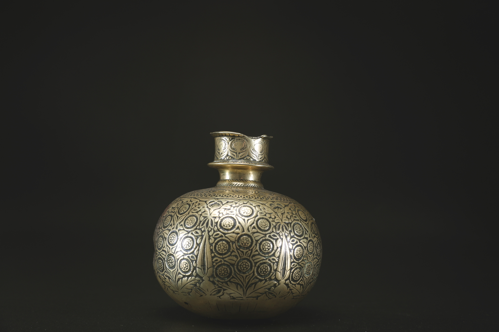 ARTE ISLAMICA Base di huqqa in ottone incisa a motivo floreale