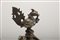 Arte Indiana A metal and silver oil lamp with a peacok shaped final