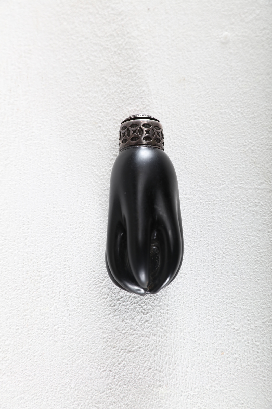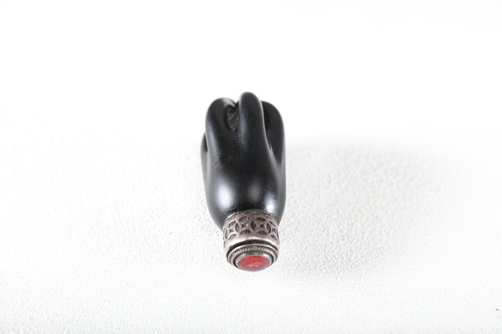 Arte Cinese Tabacchiera in vetro nero a forma di citrus fruit con tappo in argento