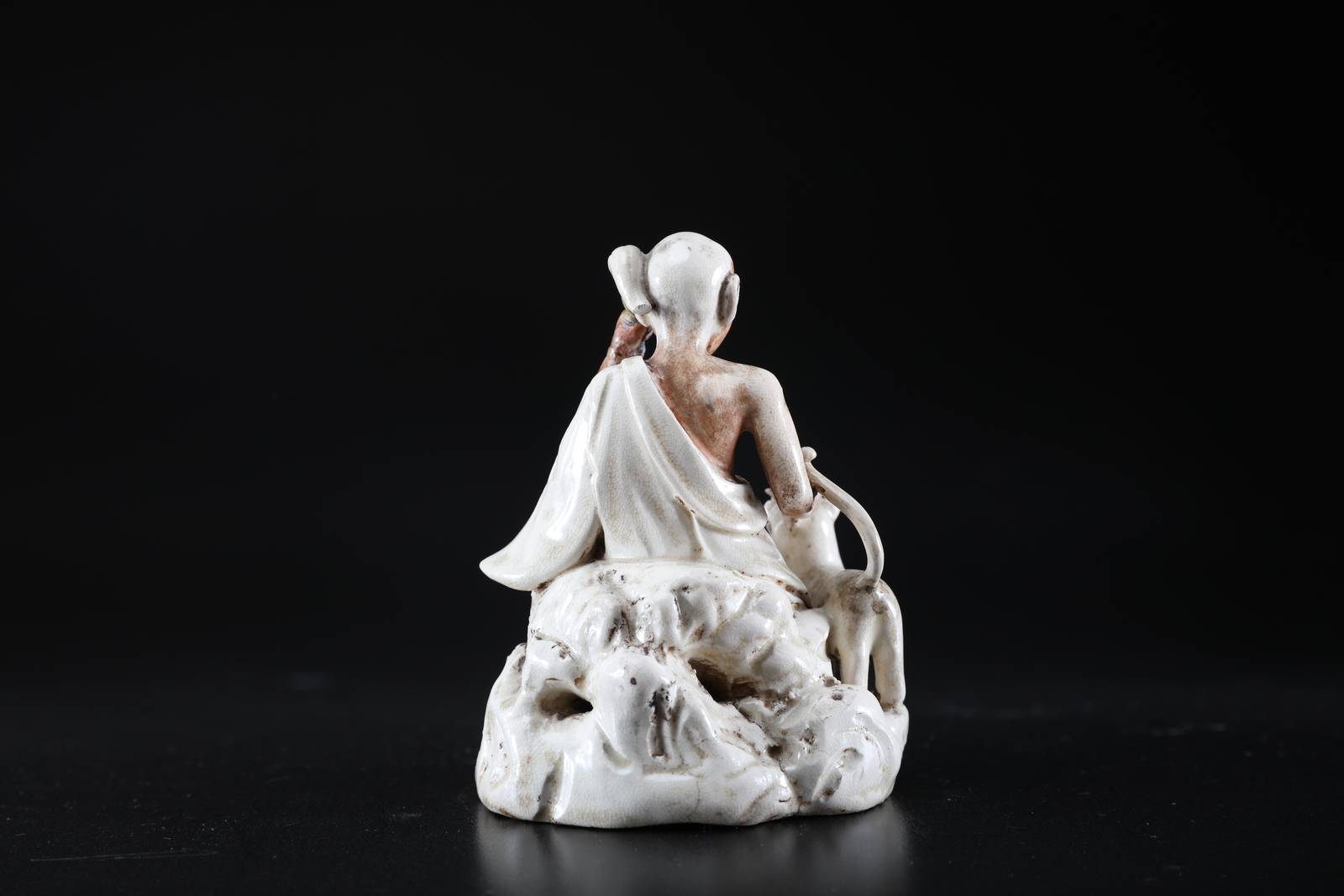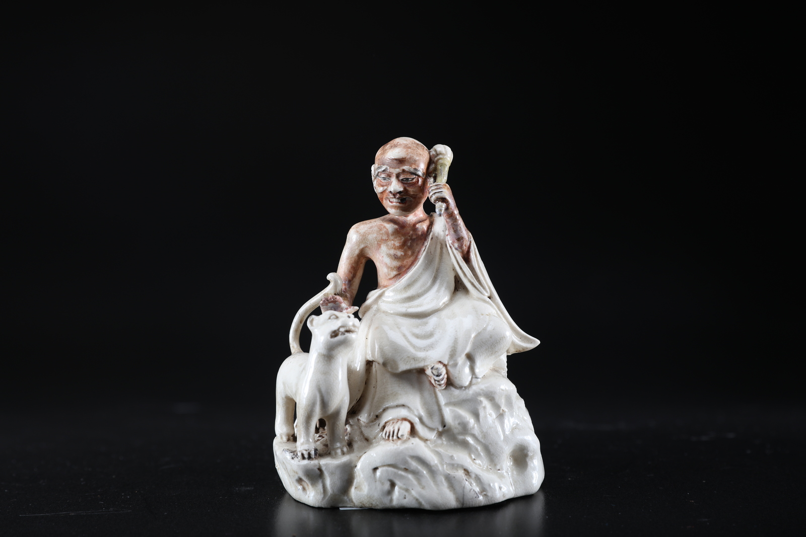 Arte Cinese Pottery group depicting the lohan Dharmatala with the tiger