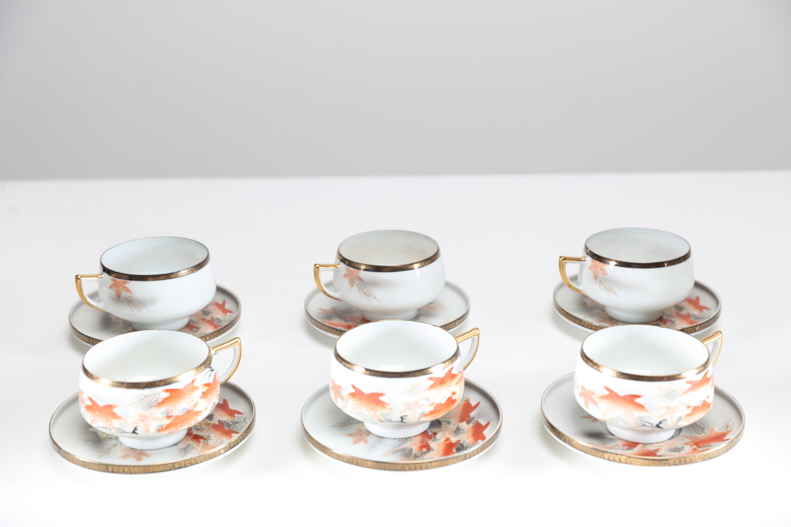 Arte Cinese Servito in porcellana dipinta e dorata comprendente sei tazze da the e sei piattini Cina, XX secolo. -. Cm 13,00.
