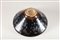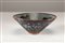 Cina, XIX secolo. -. Cm 15,00 x 6,20. Forma tronco conica poggiante su un piccolo disco, rivestita da spessa invetriatura bruna, l'interno più chiaro ricalca l'effetto "pelo di lepre" ed è arricchito da motivi vegetali stilizzati dipinti.