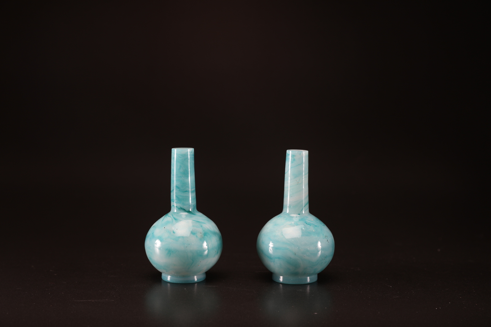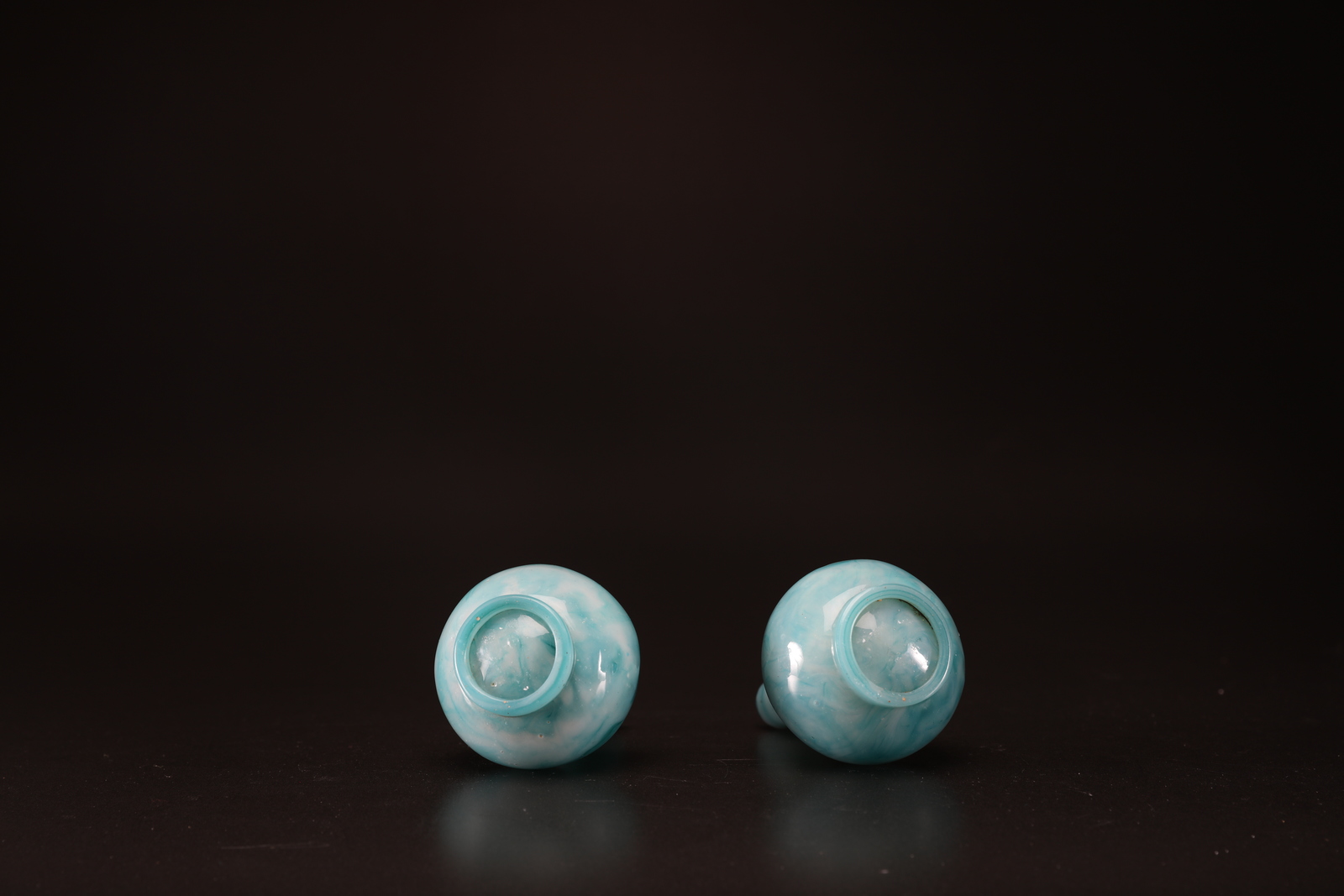 Arte Cinese Coppia di bottiglie globulari con lungo collo dritto in vetro di Pechino turchese