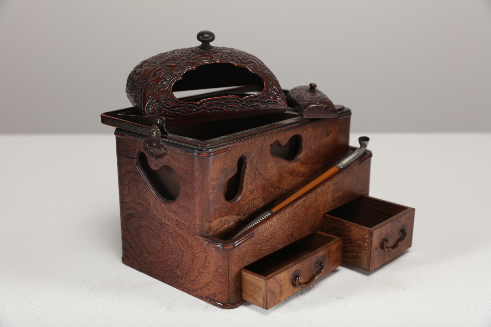 Arte Cinese Set da fumo con pipa Giappone, XIX secolo. -. Cm 19,00 x 18,00....