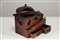Japan, 19th century . . Cm 19,00 x 18,00. Made up of root wood and embossed copper covers.