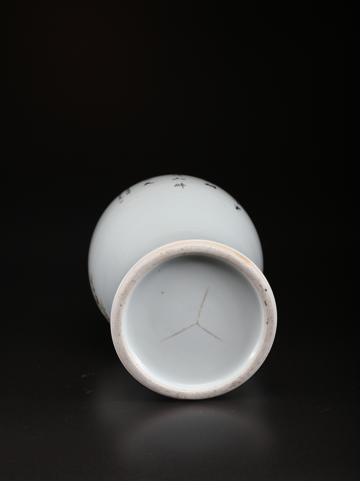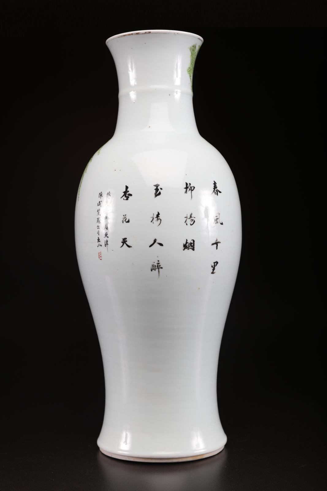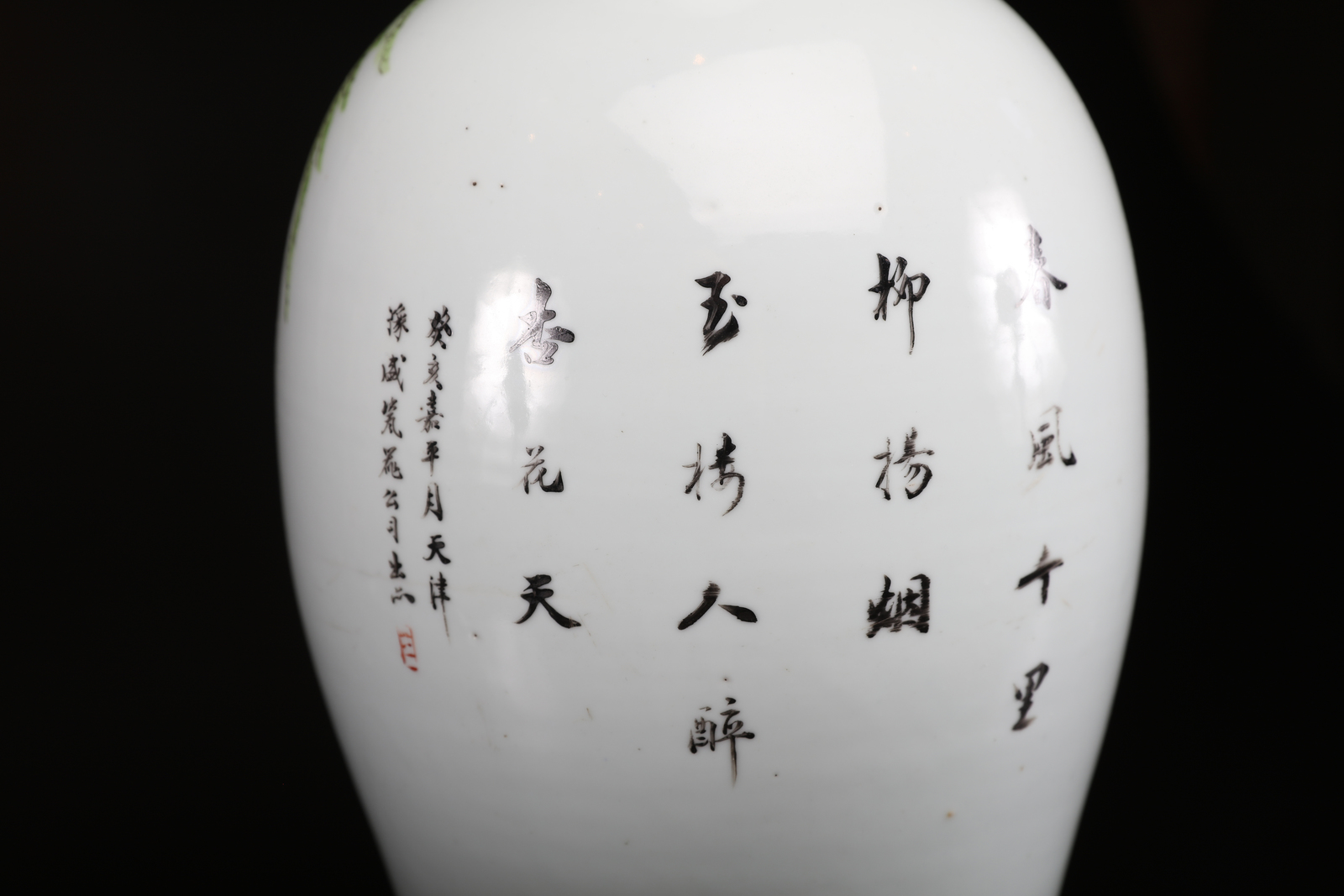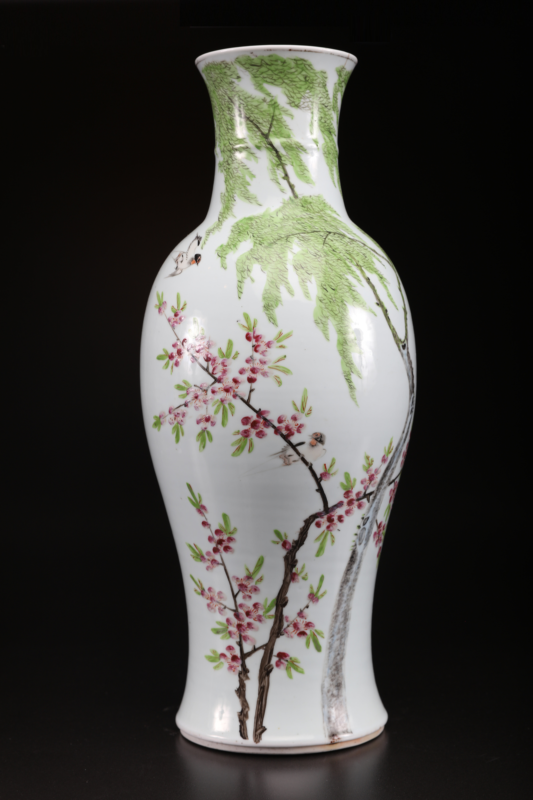 Arte Cinese A massive porcelain vase painted with blossoming branches, birds and inscriptions with the artist's seal (Mu)