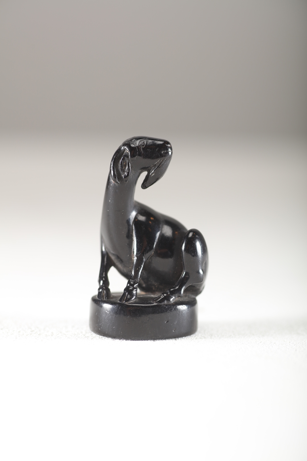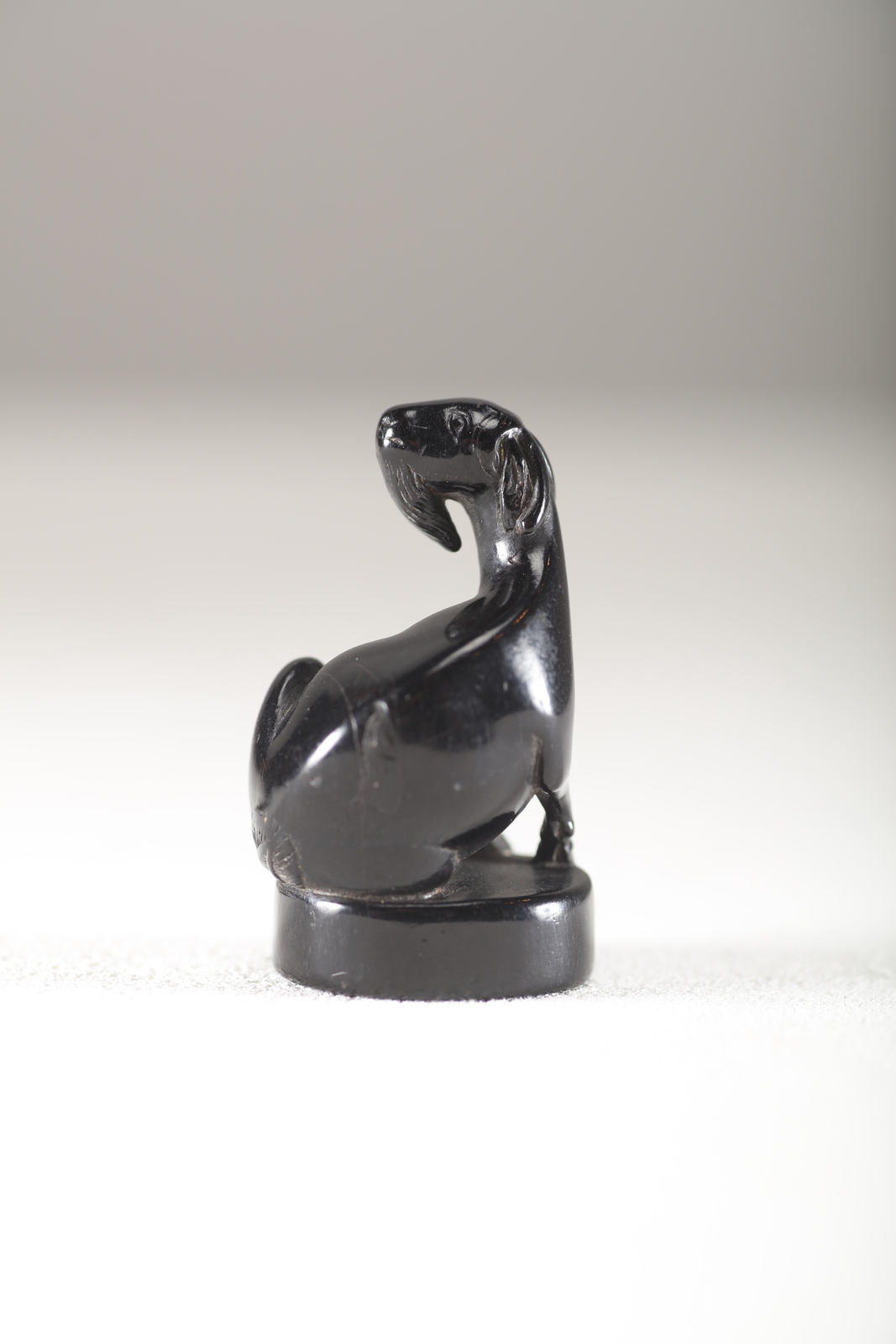 Arte Giapponese Netsuke unimatsu in corallo nero raffigurante un ariete