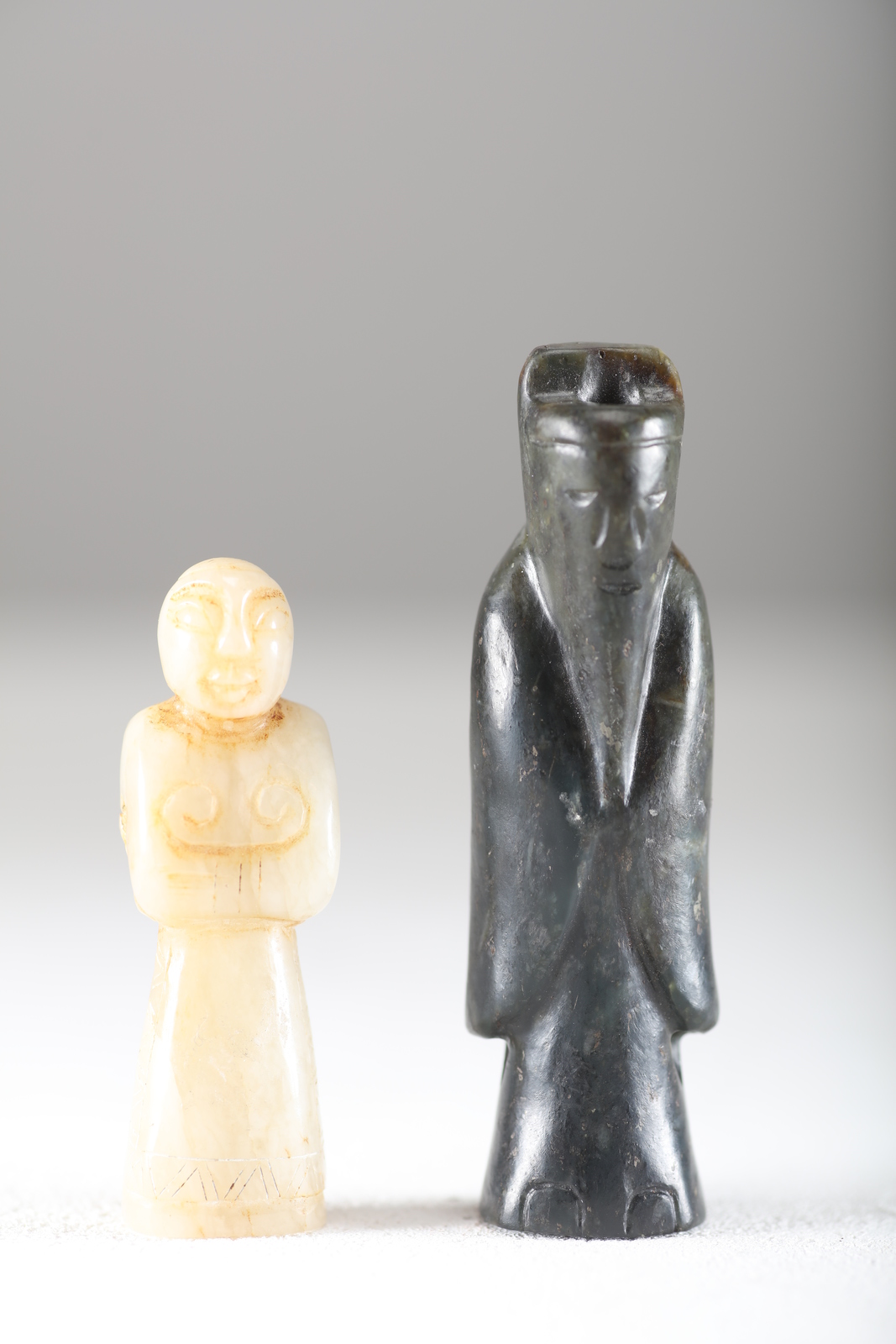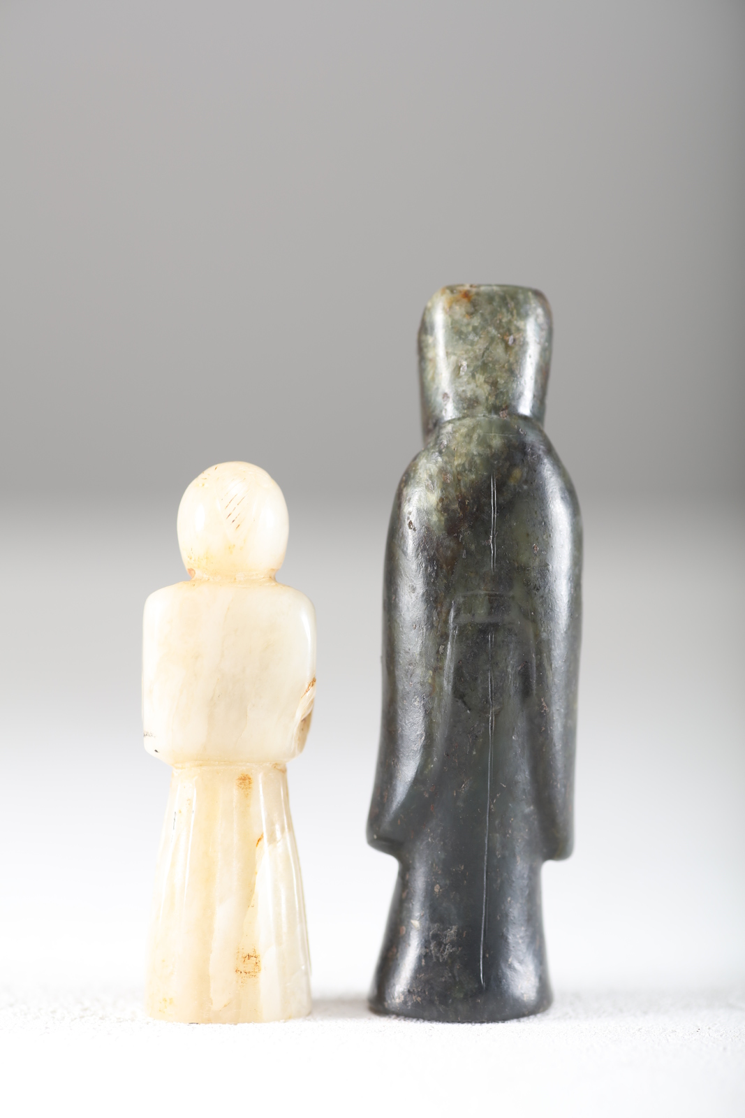Arte Cinese Due piccoli personaggi in giada Cina, dinastia Han . -. Cm 7,30....