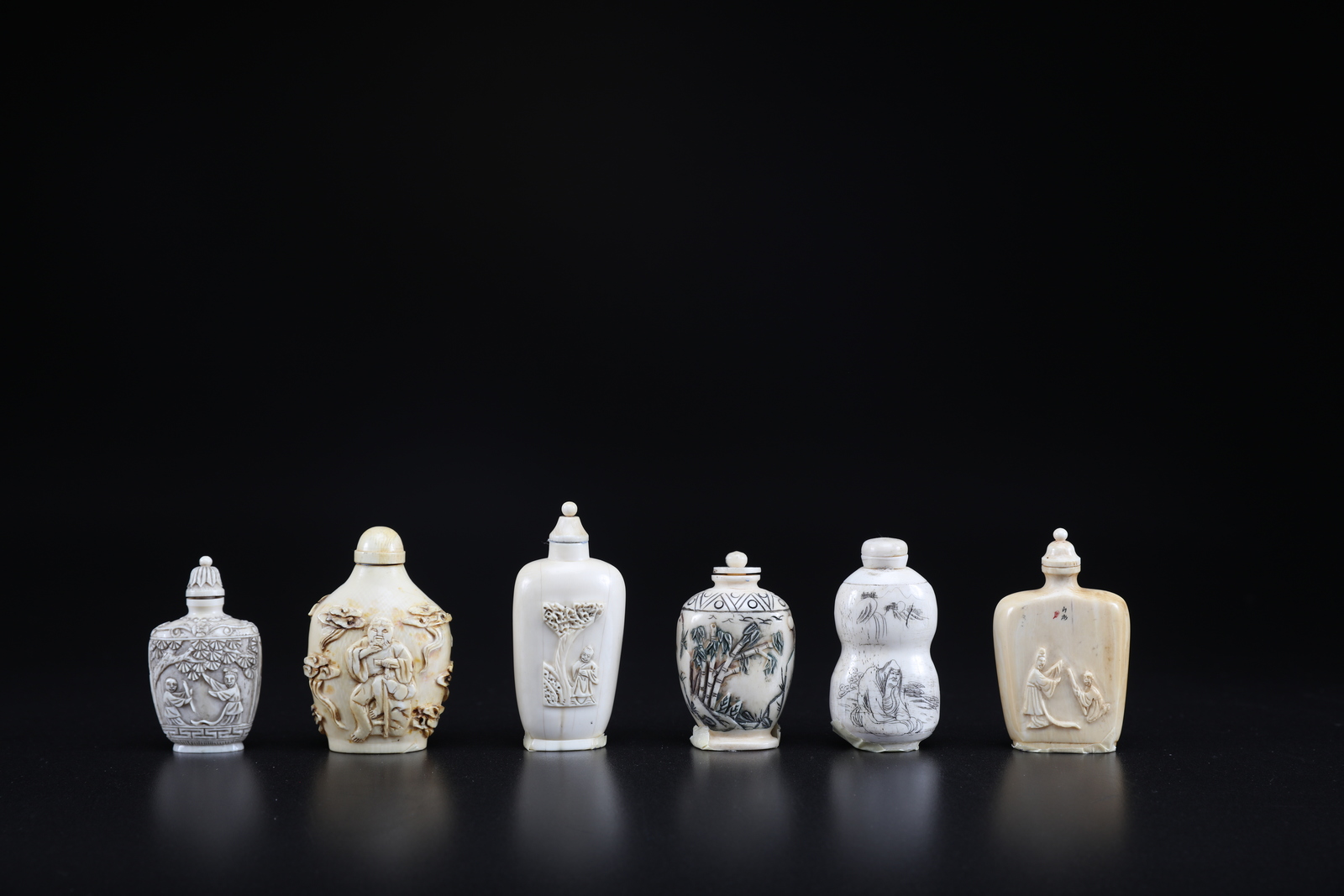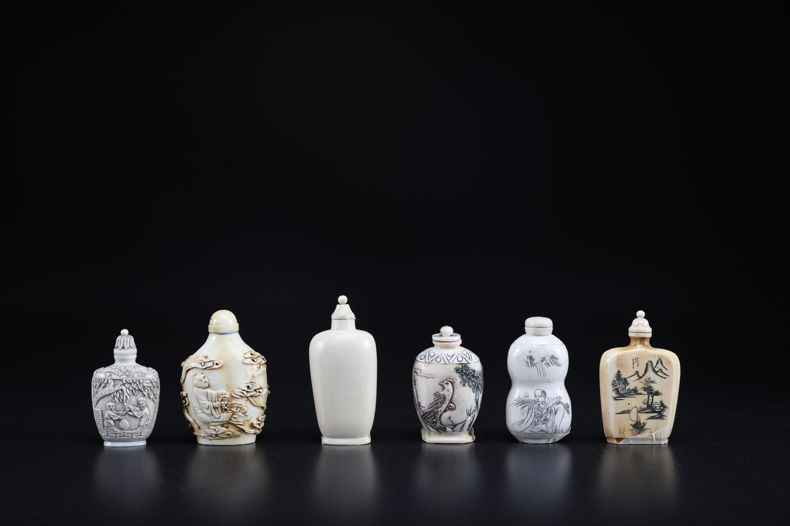 Arte Cinese Lotto composto da sei tabacchiere in avorio
