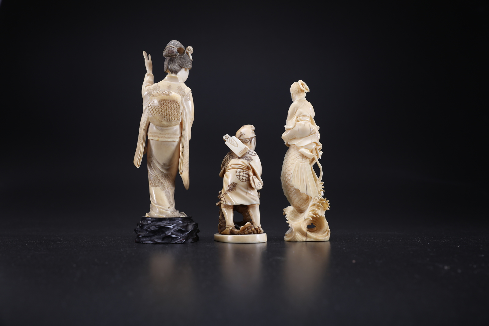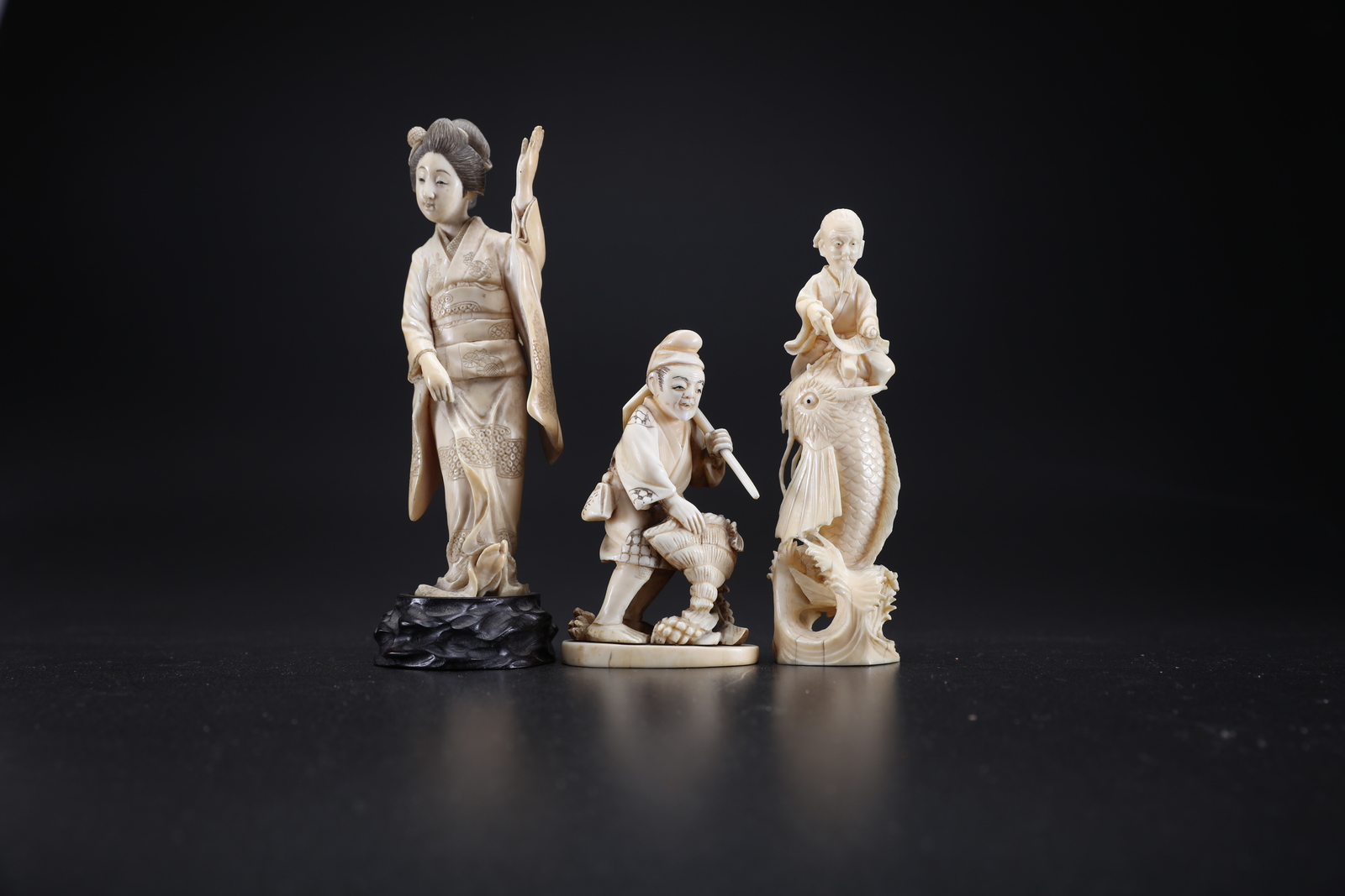 Arte Giapponese Lotto di tre okimono intagliati in avorio