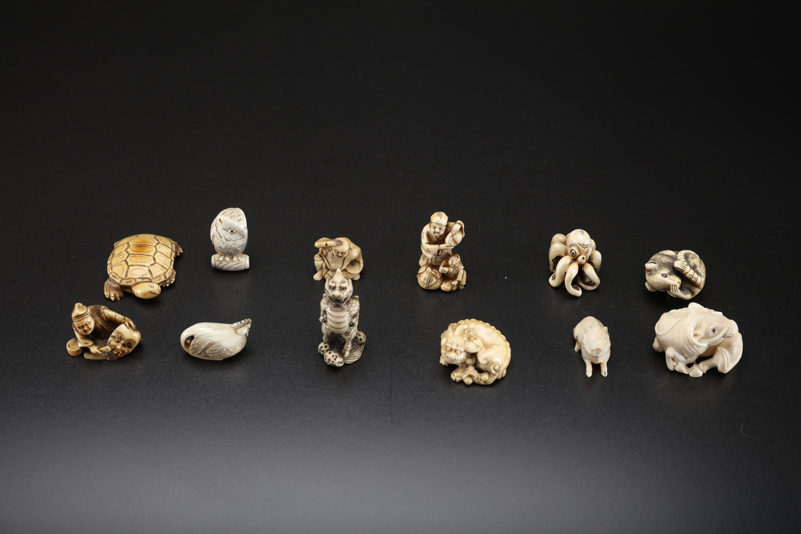 Arte Giapponese A group of ivory netsuke depicting various animals