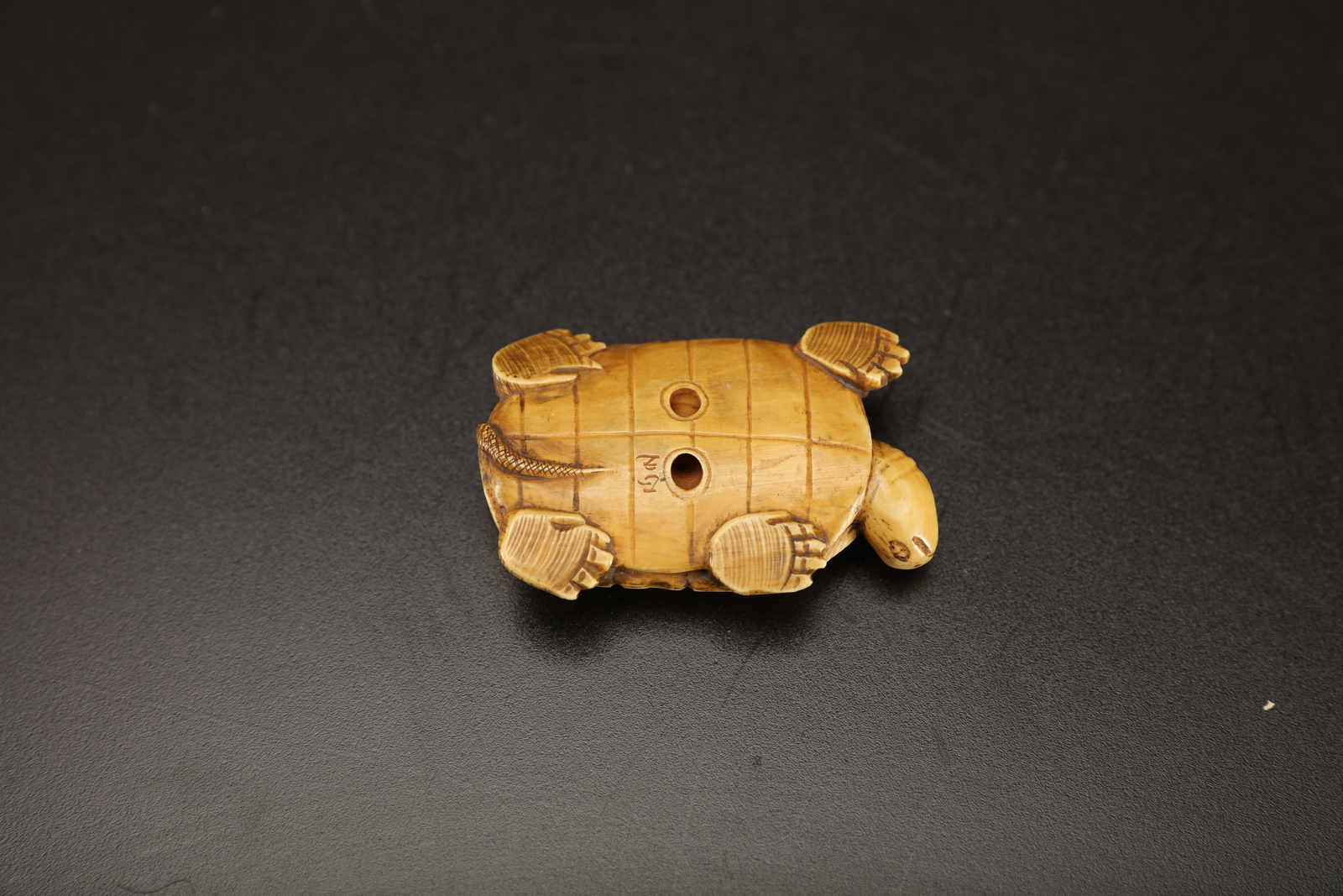 a tortoise bearing a signature at the base: 1,5 X 6 cm