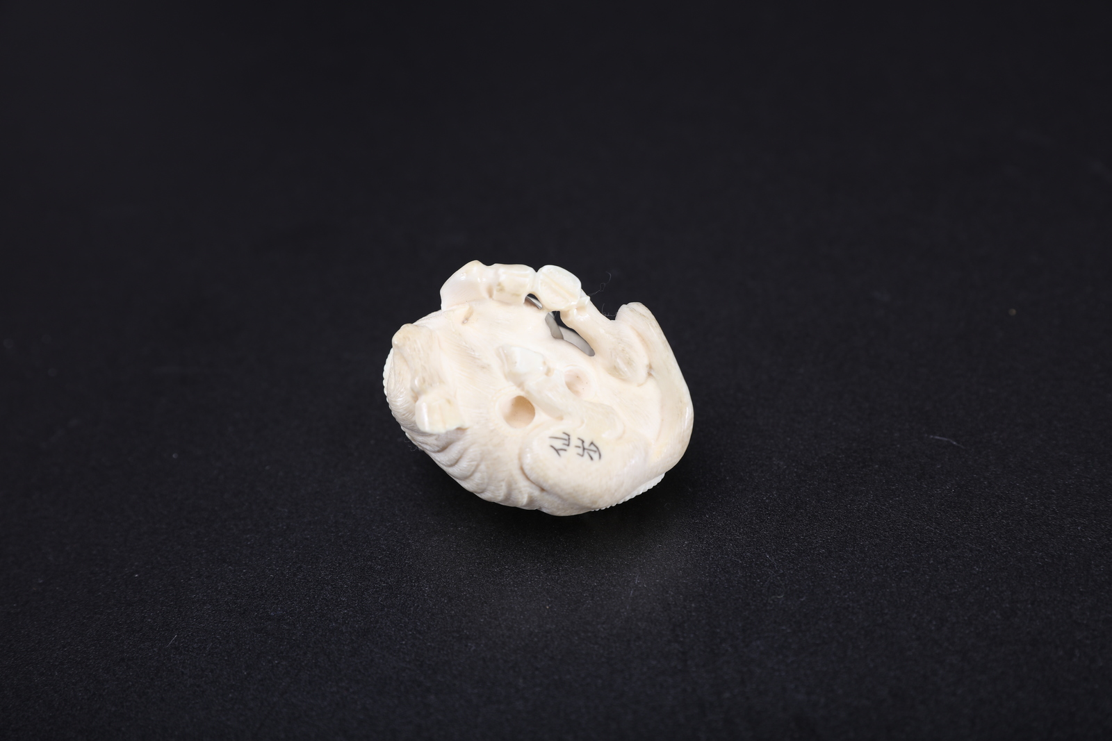 a walrus ivory netsuke in the shape of a mask carver 3 X 4 cm