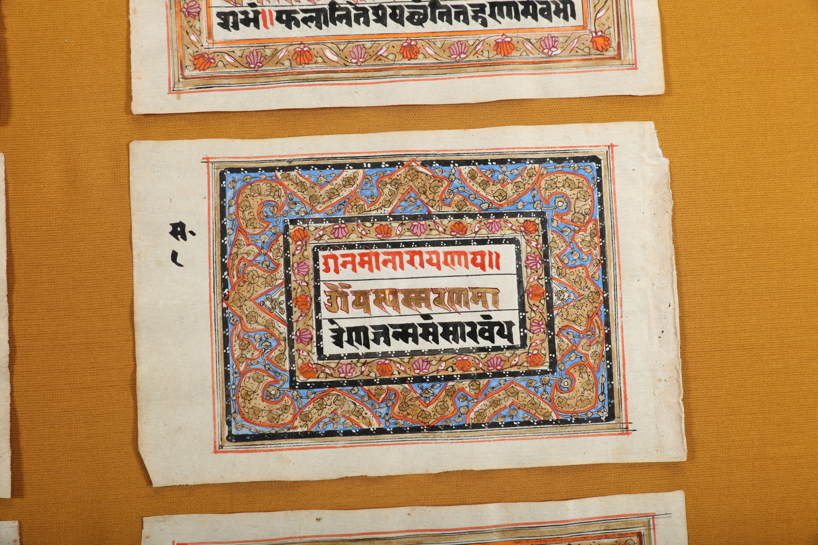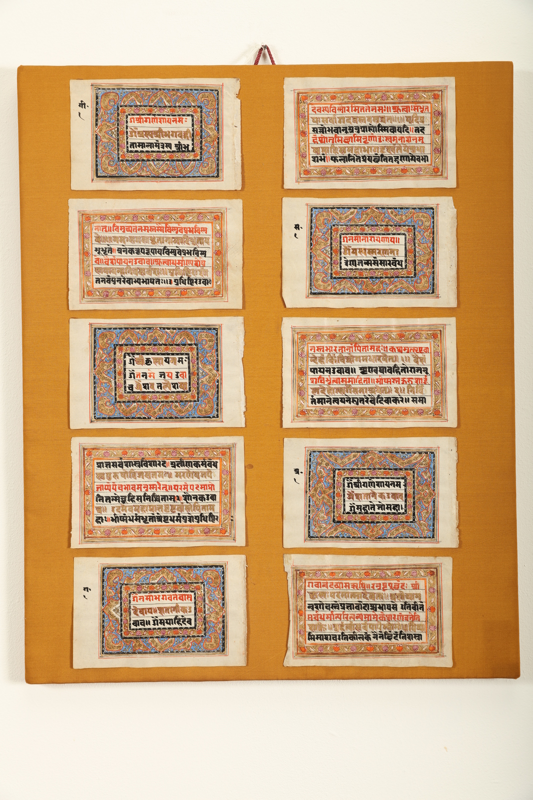 Arte Indiana Gruppo di dieci pagine tratte da testo devozionale Kashmir, XIX secolo. -. Cm 41,00 x 51,00. Singolo foglio h 9 x 14 cm