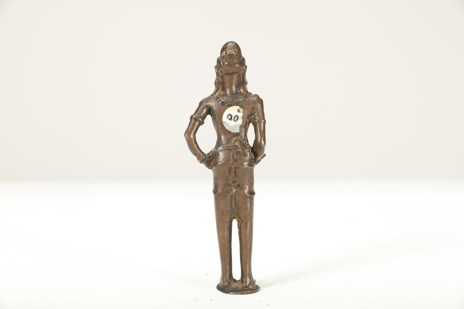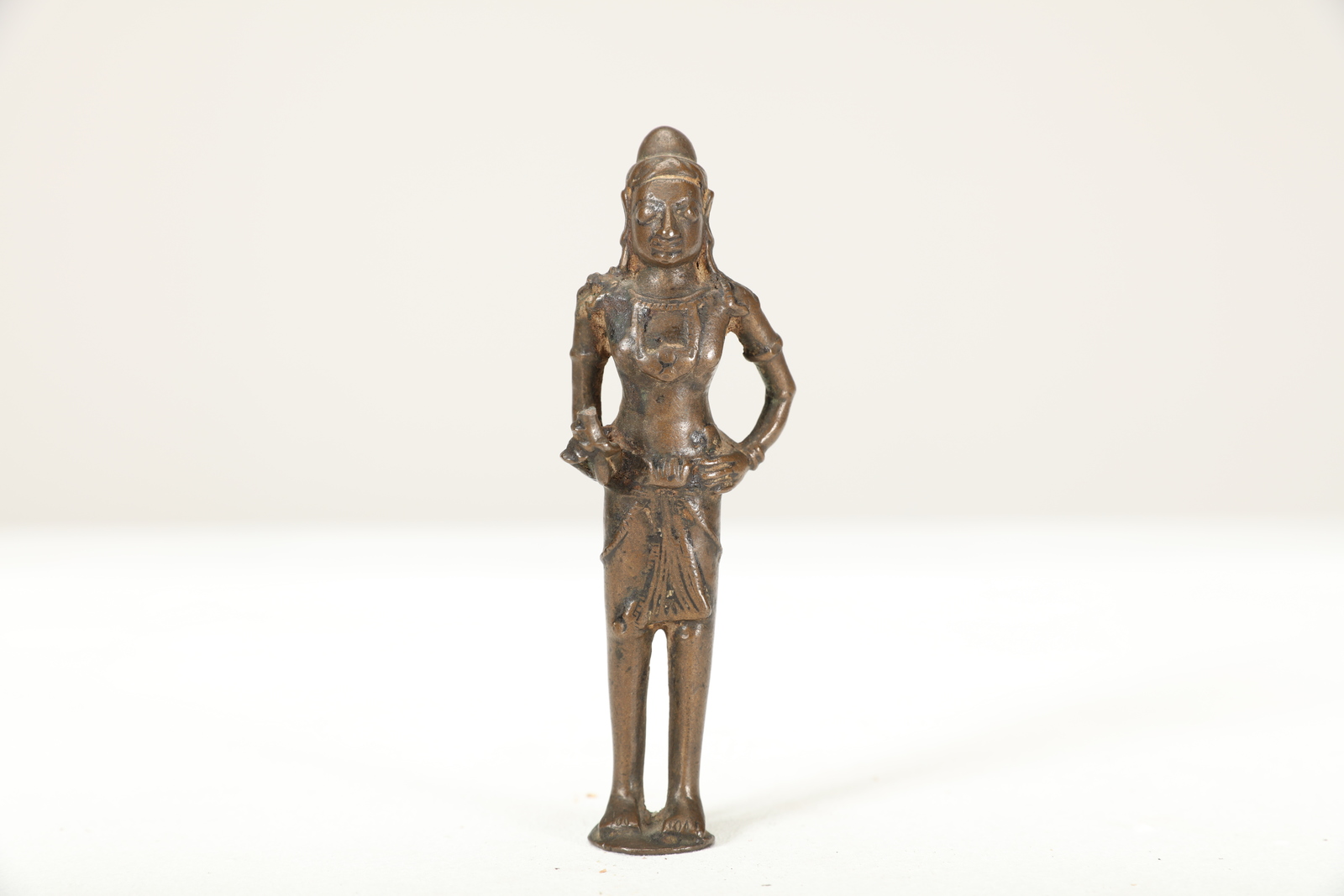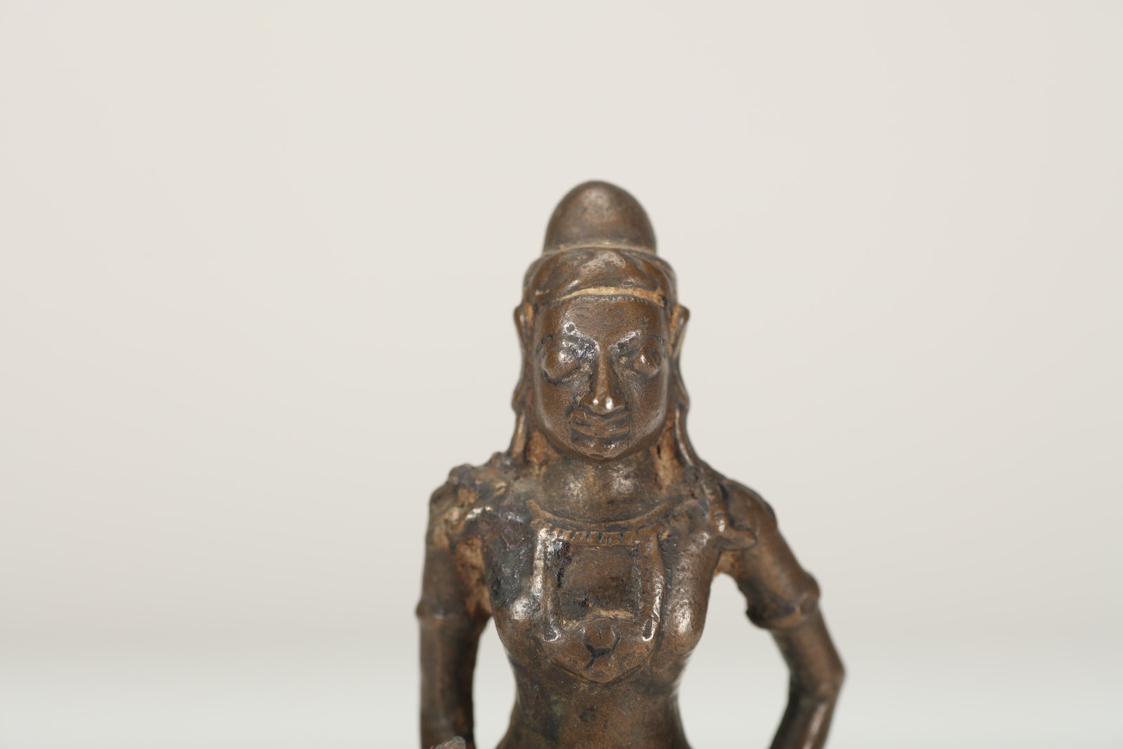 Arte Indiana Piccolo bronzo devozionale raffigurante una divinità femminile stante