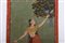 Arte Indiana Miniatura raffigurante una donna che ciba due pavoni appollaiati...