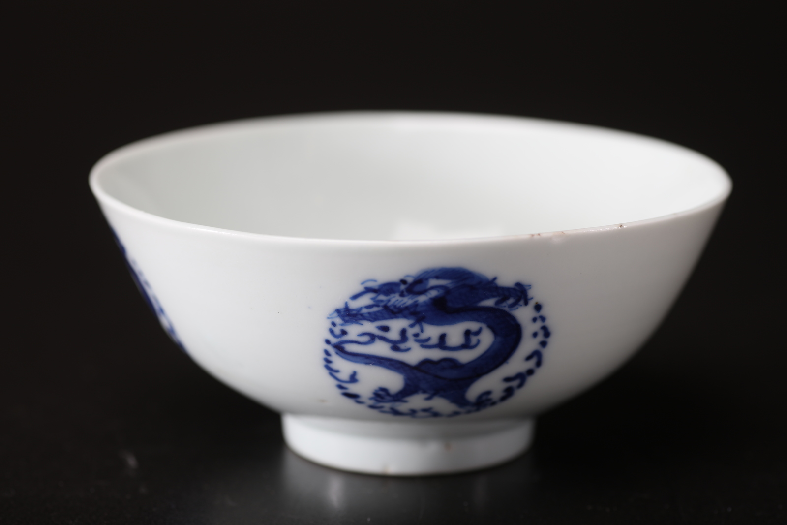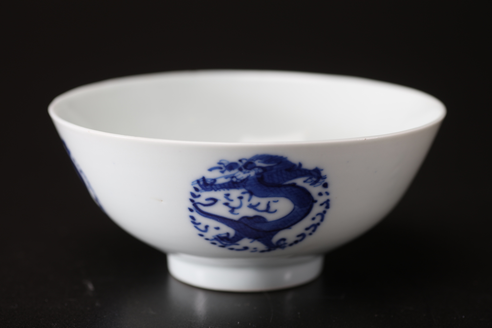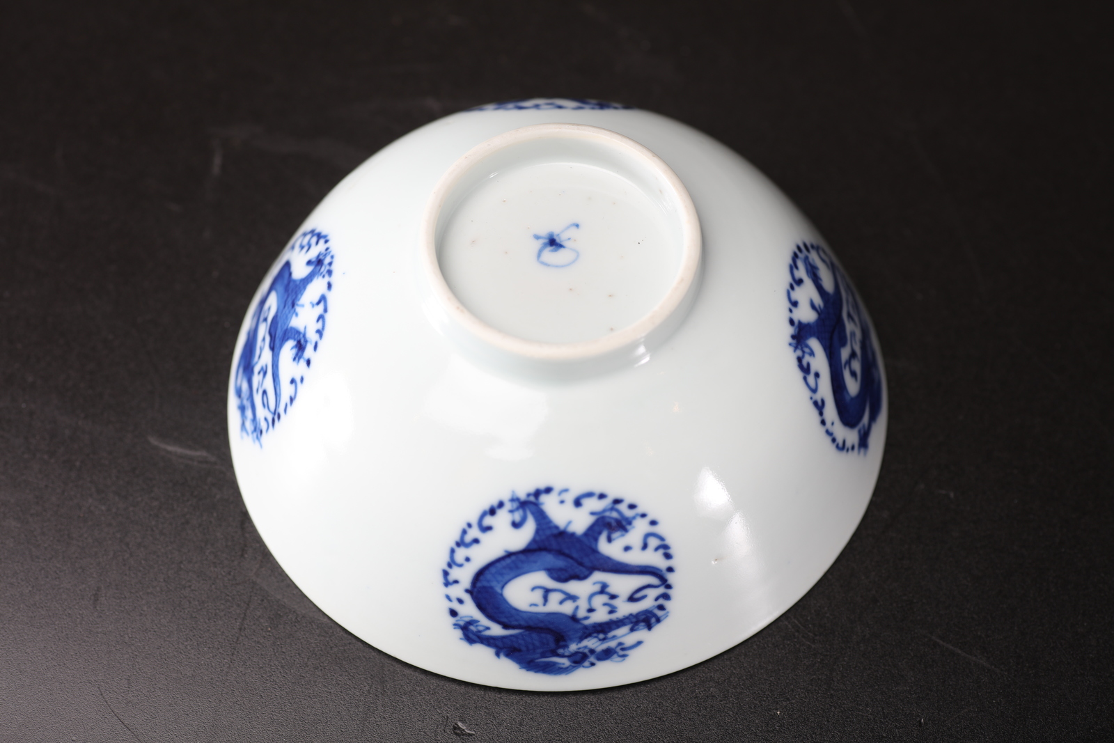 Arte Cinese Coppa in porcellana bianco/blu dipinta con quattro draghi in riserve circolari