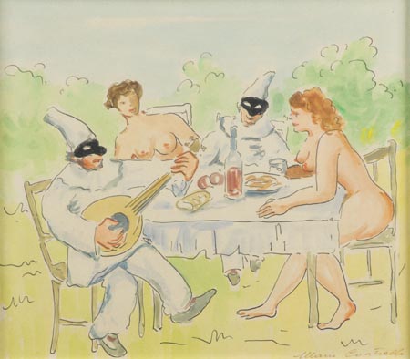 Mario Cortiello Napoli 1907 1981, Allegoria, Acquerello su cartoncino, cm. 35,5x40 Firmato in basso a destra.