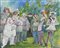Mino Maccari Siena 1898 Roma 1989, Alle Terme, Olio su cartone telato, cm. 40x50 Firmato in baso a destra; Etichetta e timbro: "Galleria La Salita", Montecatini, con descrizione.