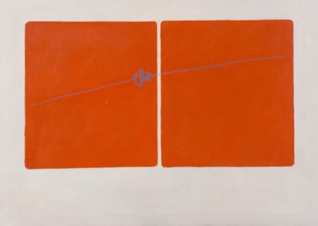Angelo Verga Milano 1933 1999, Due rossi, 1967 Olio su tela, cm. 50x70 Sul verso: firma, data e titolo; Etichetta: "Galleria Cadario", Milano
