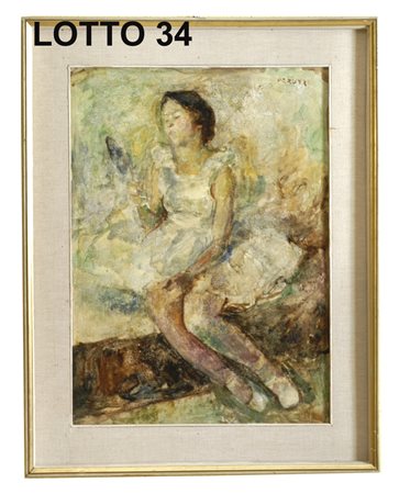 CESARE PERUZZI (1894 – 1995) DIPINTO OLIO SU TELA APPLICATA SU TAVOLA RAFF. BALLERINA MIS. 66 X 48