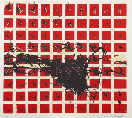 Emilio Scanavino Genova 1922 Milano 1986, Senza titolo, Serigrafia su cartoncino, cm. 49,5x54,5, es. 6/100 Firma in basso a destra, tiratura in basso a sinistra. Lievi fioriture ai bordi.