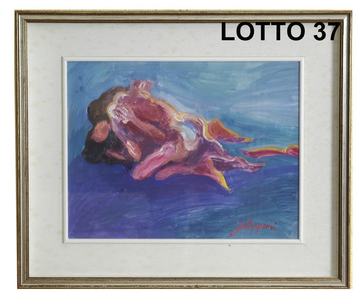 FELICE FILIPPINI (1917 - 1988) DIPINTO OLIO SU CARTONE RAFF. INNAMORATI MIS....