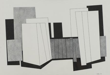 Gualtiero Nativi Pistoia 1921 Greve in Chianti (Fi) 1999, Senza titolo, 1977 Tempera e china su carta intelata, cm. 44x64 Firma e data in basso a destra; Sul verso: Archivio n. 7752. Autentica dell'Archivio Gualtiero Nativi su foto con timbro a secco, firma "Berto Nativi" e Archivio n° 7752.