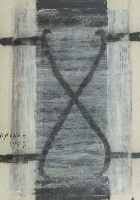 Piero Pizzi Cannella Roma 1955 , Il ferro, 1997 Tecnica mista su cartone, cm. 70x50 Titolo e data sul lato sinistro; Sul verso: firma e data.