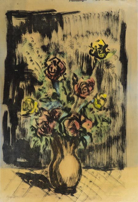 Domenico Purificato Fondi (Lt) 1915 Milano 1984, Vaso di fiori, anni '60 Tecnica mista su cartoncino, cm. 63x45 Firmato in basso a sinistra; Etichetta: "Galleria Gildart", Roma, con descrizione.