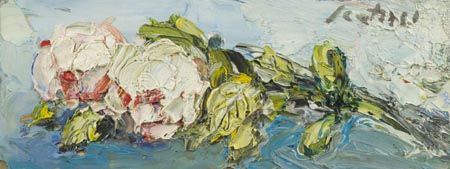Sergio Scatizzi Gragnano (Lu) 1918 Firenze 2009, La rosa, Olio su tavola , cm. 17x45 Firmato in alto a destra; Sul verso: firma e titolo. Autentica dell'Artista su foto.