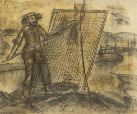 Gino Terreni Empoli, Fi 1925 Empoli,Fi 2015, Il renaiolo, 1952 Tecnica mista su carta, cm. 55x65 Firma e data in basso a sinistra; Sul verso: Scritto di provenienza.