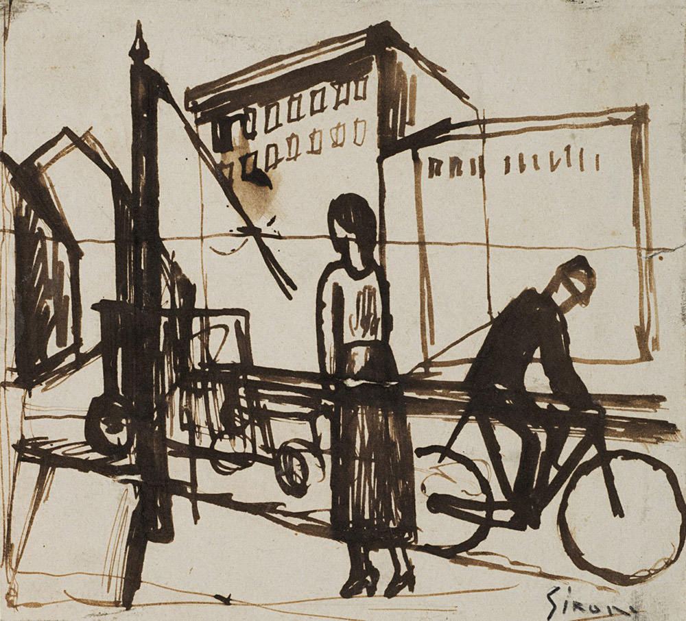 Mario Sironi (Sassari 1885 - Milano 1961) "Paesaggio urbano" 1920 ca. inchiostro su carta, cm 12,3x13,5 Opera registrata presso l'Associazione per il patrocinio e la promozione della figura e dell'opera di Mario Sironi, Milano, in data 14/11/11, con il n. 252/11 RA Mario Sironi (Sassari 1885 - Milano 1961) "Paesaggio urbano" around 1920 ink on paper, cm 12,3x13,5 Work registered at the Associazione per il patrocinio e la promozione della figura e dell'opera di Mario Sironi, Milan, on 14/11/11 with nr. 252/11 RA