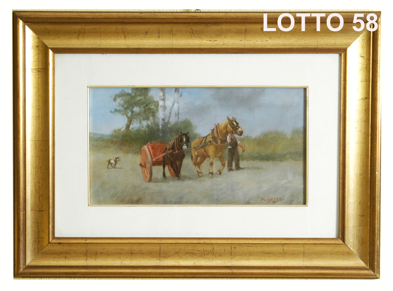 Lotto 58 | ALFREDO SORESSI (1897 - 1982) DIPINTO OLIO SU TAVOLA RAFF. CAVALLI AL TRAINO...