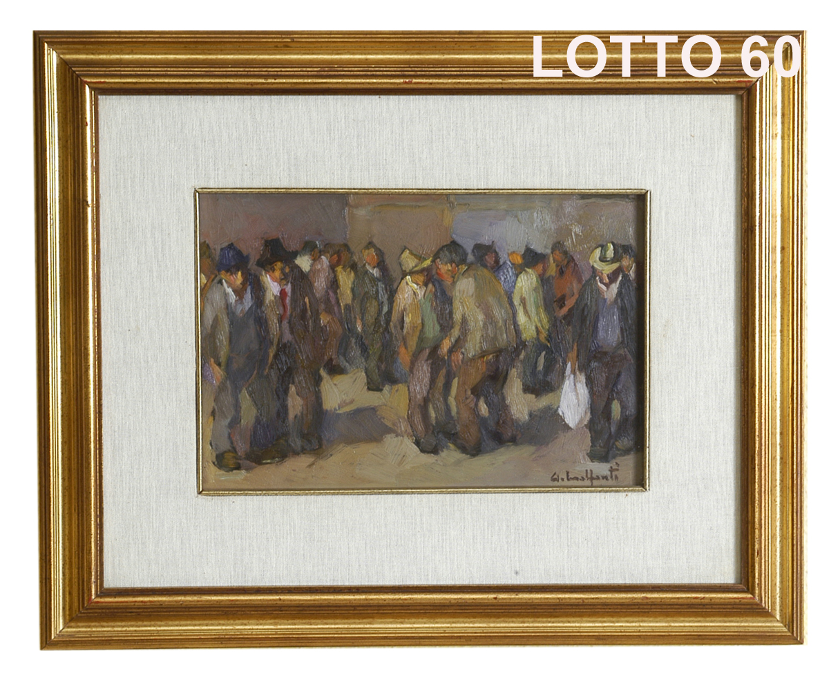 GIACOMO MALFANTI (1907 - 1998) DIPINTO OLIO SU TAVOLA RAFF. IL MERCATO MIS....
