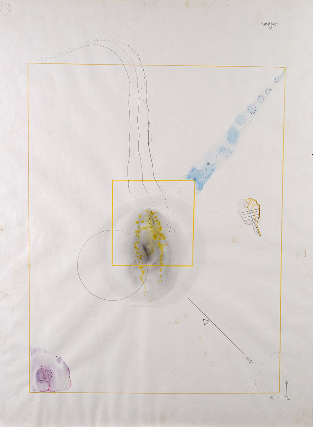 Shusaku Arakawa (Nagoya 1936 - Manhattan 2010) "Senza titolo" 1963 tecnica mista su carta, cm 75x55 Firmato e datato 63 in alto a destra Shusaku Arakawa (Nagoya 1936 - Manhattan 2010) "Untitled" 1963 mixed media on paper, cm 75x55 Signed and dated 63 upper right