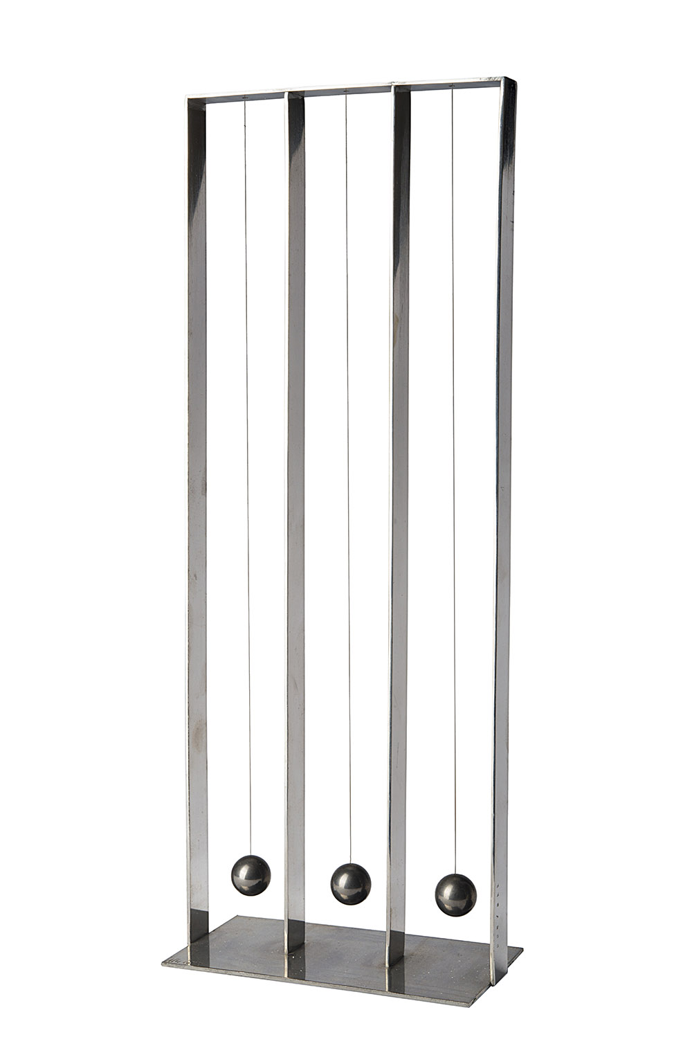 Fausto Melotti (Rovereto 1901 - Milano 1986) "Scultura A (I pendoli)" 1968 (1971) scultura in acciaio inox, cm 40x15x8 Firmata e numerata es.449/500 Fausto Melotti (Rovereto 1901 - Milano 1986) "Scultura A (I pendoli)" 1968 (1971) inox steel sculpture, cm 40x15x8 Signed and numbered 449/500