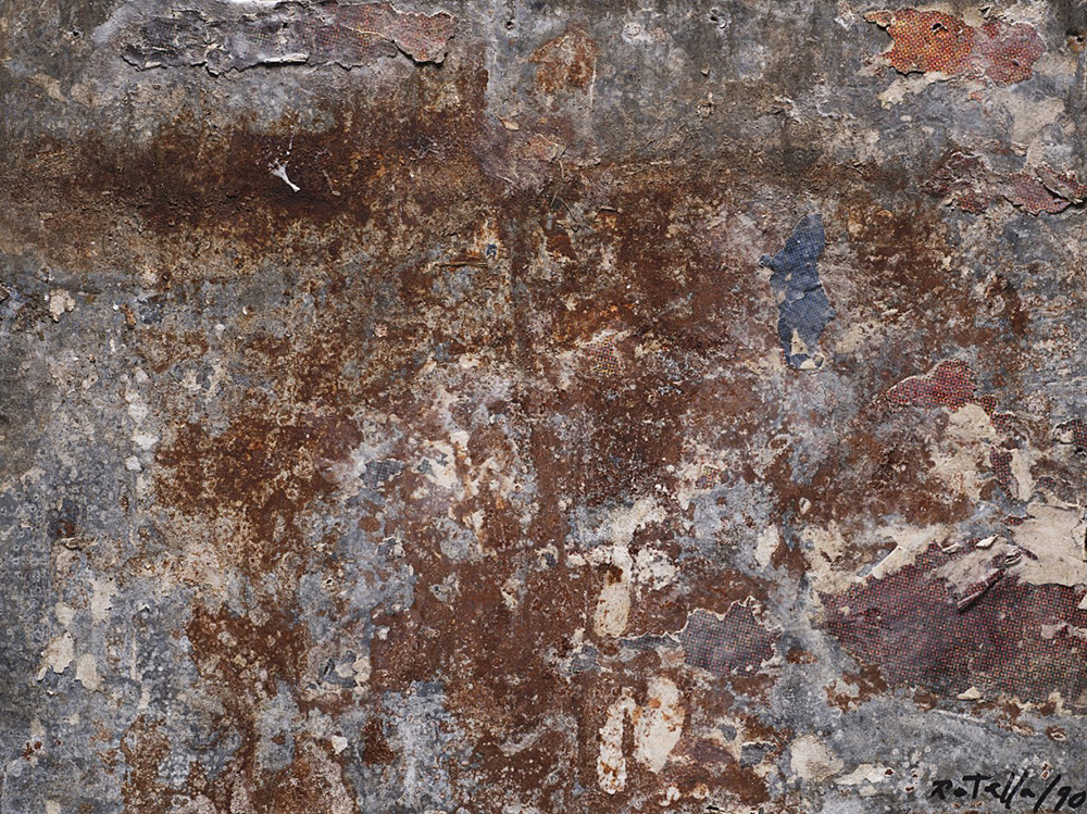 Mimmo Rotella (Catanzaro 1918 - Milano 2006) "Brumoso" 1990 décollage su metallo, cm 37,5x50 Firmato e datato 90 in basso a destra Opera registrata presso la Fondazione Mimmo Rotella, Milano, con il n.0714LA990/000 Mimmo Rotella (Catanzaro 1918 - Milano 2006) "Brumoso" 1990 decollage on metal, cm 37,5x50 Signed and dated 90 lower right Work registered at the Fondazione Mimmo Rotella, Milan, n.0714LA990/000