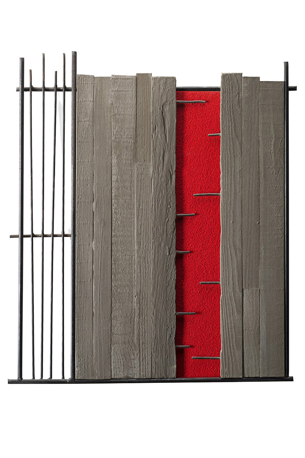 Giuseppe Uncini (Fabriano 1929 - Trevi 2008) "Muri di cemento" 2000 legno, ferro e pigmento rosso, cm 44x38 Firmata, titolata e datata 2000 al retro Provenienza Opera donata dall'artista all'Associazione Oncologica Fabrianese Acquisita all'asta di beneficienza dall'attuale proprietario Opera accompagnata da certificato di autenticità su fotografia rilasciato dall'Archivio Opera Giuseppe Uncini, Trevi, con il n.00-053 Giuseppe Uncini (Fabriano 1929 - Trevi 2008) "Muri di cemento" 2000 wood, iron, red pigment, cm 38x44 Signed, titled and dated 2000 on verso Provenance Work donated by the artist to the Associazione Oncologica Fabrianese Aquired at a charity auction by the present owner Certificate of authenticity on photography by Archivio Giuseppe Uncini, Trevi, n.00-53