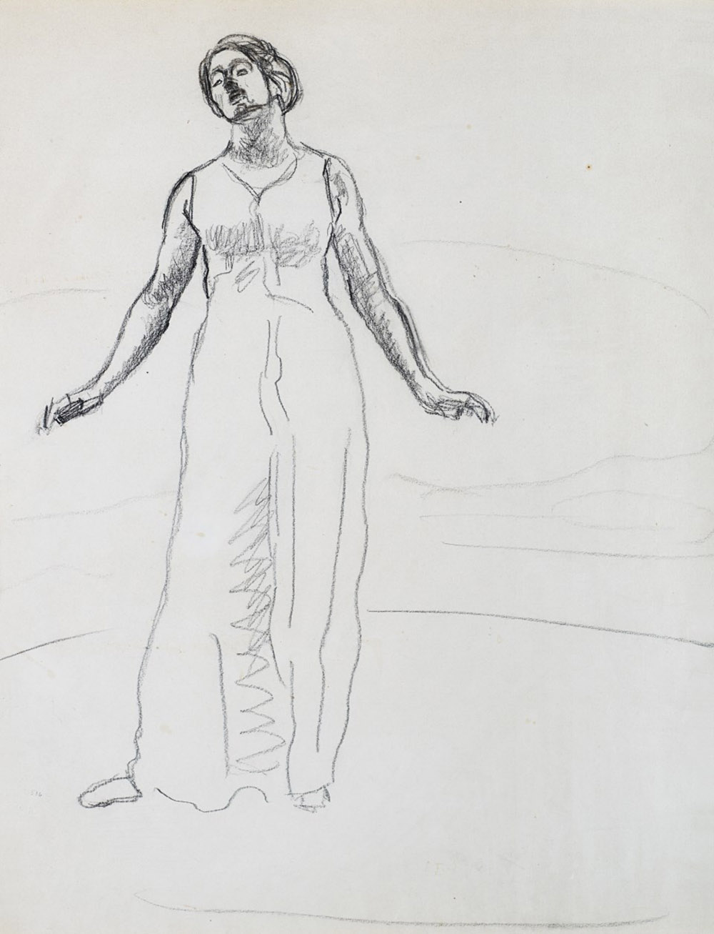 Ferdinand Hodler (Berna 1853 - Ginevra 1918) "Studie zu 'Blick in die Unendlichkeit'" 1916 matita su carta, cm 48x38,5 Timbro a secco "Succession Hodler" Provenienza Galerie Neupert, Zurigo Collezione privata, Stoccolma Collezione Ambasciatore Onofrio Solari Bozzi, Roma Ferdinand Hodler (Berna 1853 - Ginevra 1918) "Studie zu 'Blick in die Unendlichkeit'" 1916 pencil on paper, cm 48x38,5 Stamp "Succession Hodler" Provenance Galerie Neupert, Zurich Collezione privata, Stockholm Ambassador Onofrio Solari Bozzi collection, Rome