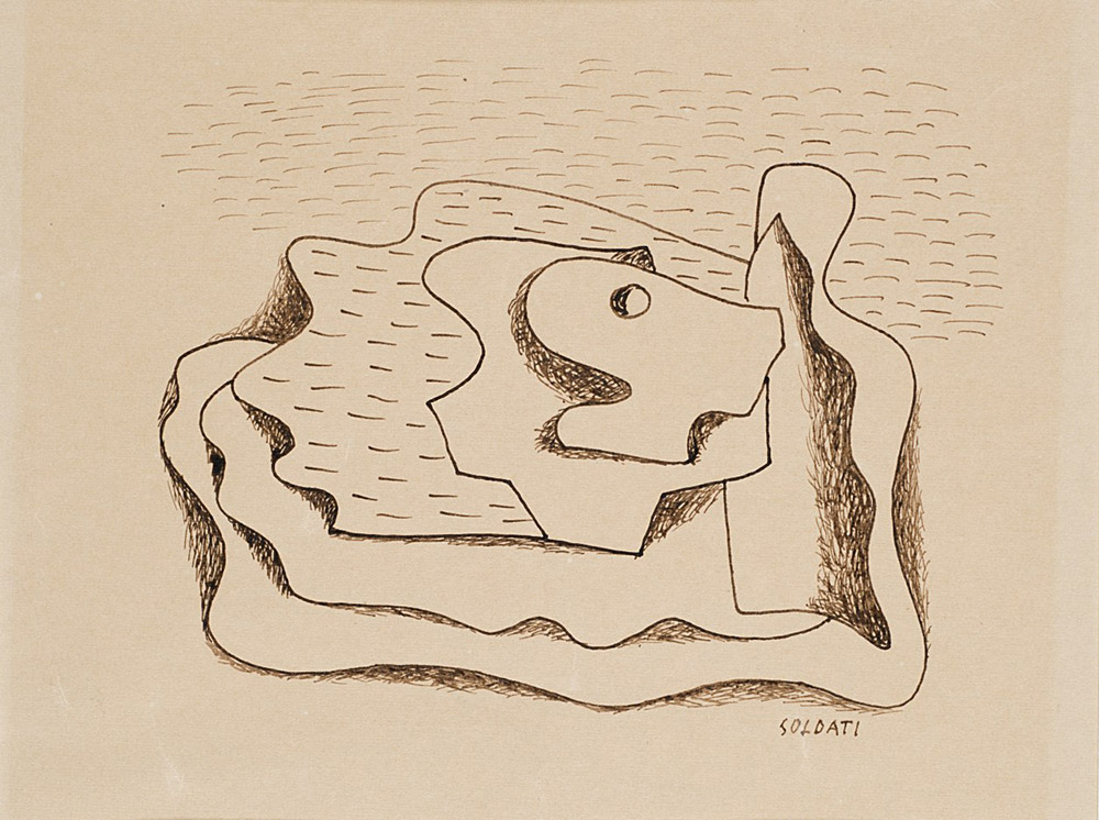 Atanasio Soldati (Parma 1896 - 1953) "Senza titolo" 1932-33 china su carta, cm 17,5x23,5 Firmato in basso a destra Opera accompagnata da certificato di autenticità su fotografia rilasciato dall'Archivio Atanasio Soldati, Bologna con il n. AS16111 Atanasio Soldati (Parma 1896 - 1953) "Untitled" 1932-33 ink on paper, cm 17,5x23,5 Signed lower right Certificate of authenticity on photography by the Archivio Atanasio Soldati, Bologna with nr. AS16111