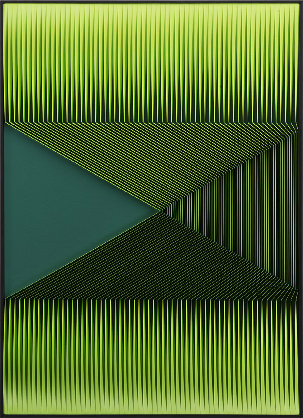 Alberto Biasi (Padova 1937 - 0) "Politipo" 1973 lamelle di plastica (pvc) su tavola dipinta, cm 70x50 Firmato, titolato e datato 1973 al retro Provenienza Galleria Del Cavallino, Venezia Galleria La Chiocciola, Padova Galleria Peccolo, Livorno Galleria Spagnoli, Firenze Collezione privata, Milano Alberto Biasi (Padova 1937 - 0) "Politipo" 1973 pvc relief on painted board, cm 70x50 Signed, titled anda dated 1973 on verso Provenance Galleria Del Cavallino, Venice Galleria La Chiocciola, Padova Galleria Peccolo, Livorno Galleria Spagnoli, Florence Private collection, Milan